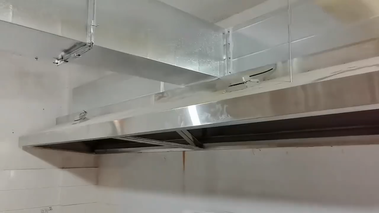 饭店不锈钢烟罩风机净化器安装现场