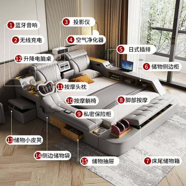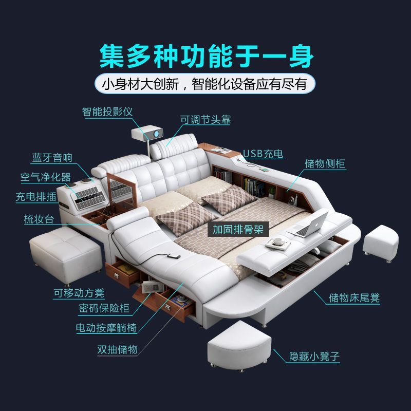 多功能按摩真皮榻榻米智能床