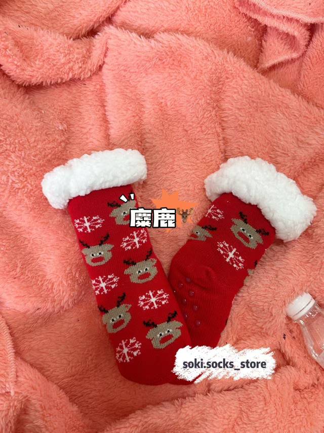 麋鹿圣诞系列棉花绒点胶保暖袜子