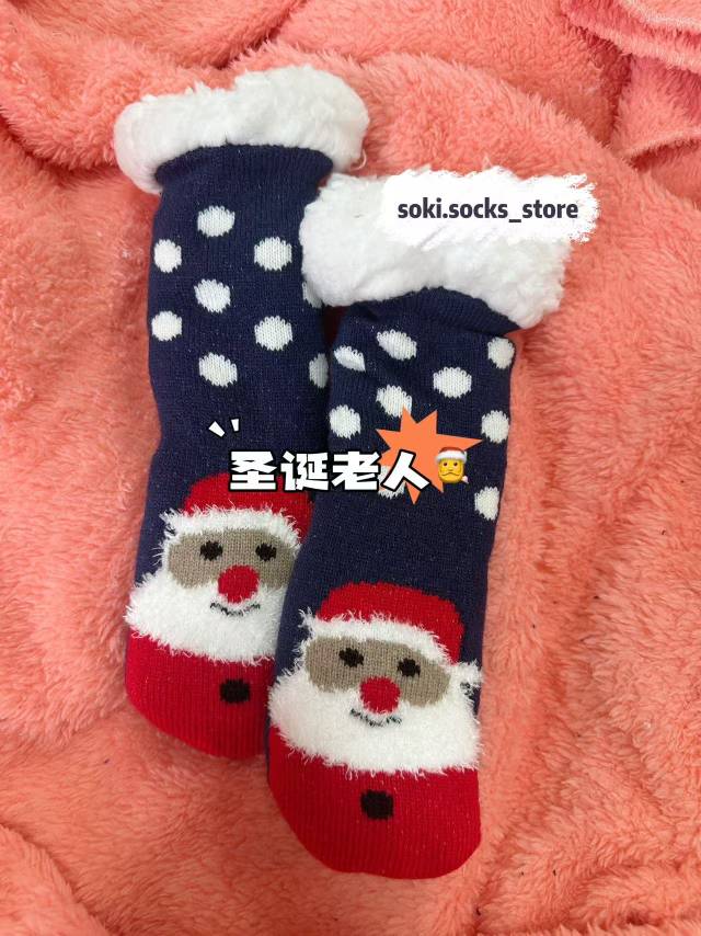 圣诞老人加厚点胶藏青圆点