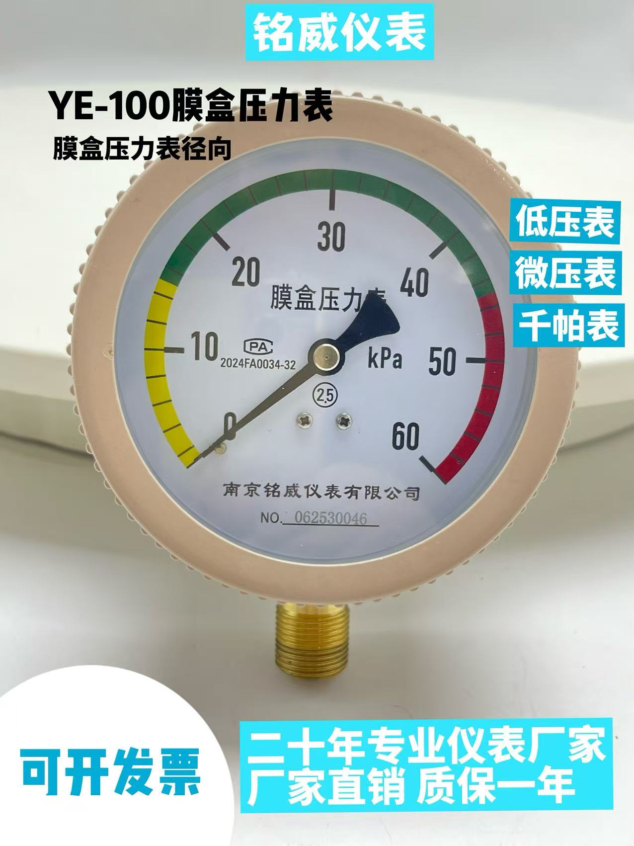 铭威仪表膜合表千帕表YE-100天然气 燃气蒸汽压力表空气厂家直供