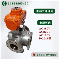 T型电动三通球阀 Q945F-16P DN50 电动三通法兰球阀