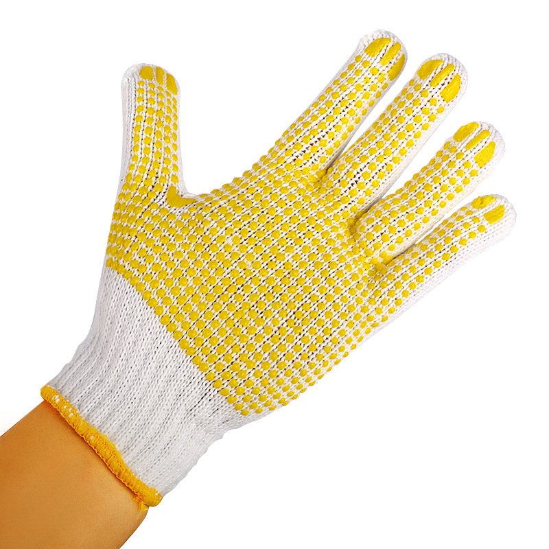 汉盾 HD-750G-7 黄点塑涤棉 7针漂白750g点塑纱线手套 12副/打
