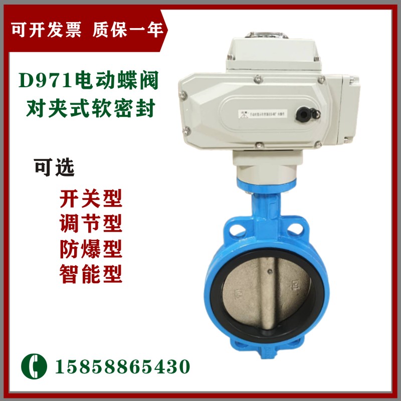 电动对夹式软密封蝶阀 D971F-10C 中线对夹式水用蝶阀 DN50