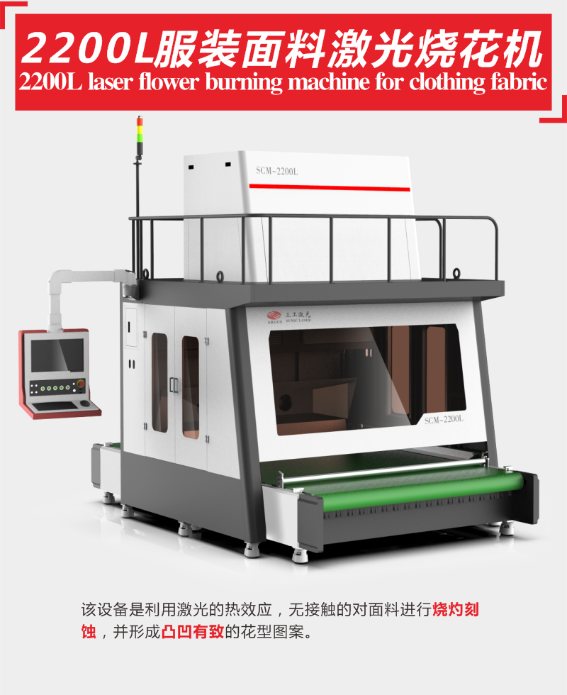 2200L面料烧花机 双面绒服装面料激光烧花机