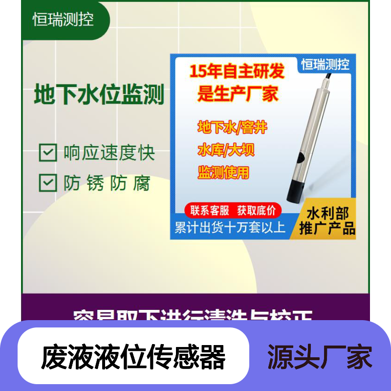 废液液位传感器 响应快 防阻塞 耐腐蚀 信号稳定