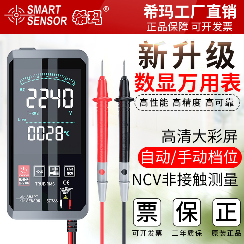 希玛ST388 智能万用表 无需换档防烧电工维修仪表