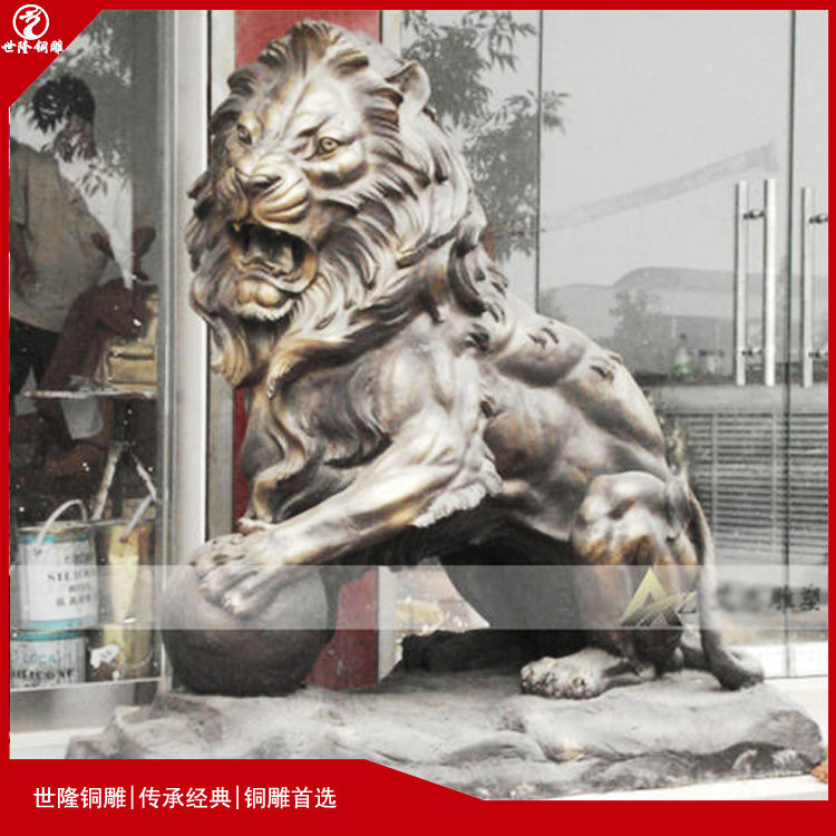 别墅庭院门口狮子雕塑摆件 景观动物摆件 世隆铜雕塑制作