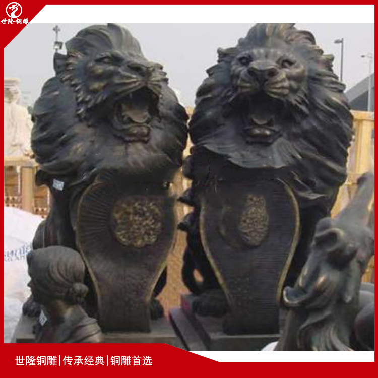 广场铸铜狮子雕塑 制作大型狮子摆件 世隆纯铜铸造