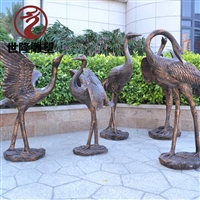 公园纯铜仙鹤雕塑 景区铸铜群鹤 动物铜摆件批发