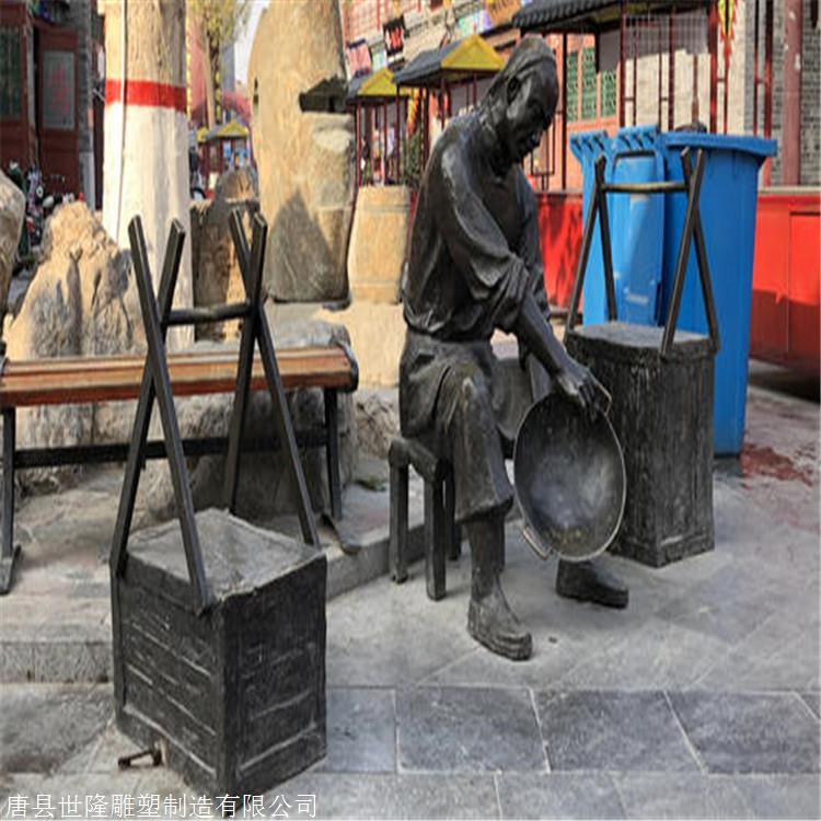 商业街人物摆件 现代民俗雕塑 步行街劳作主题铜雕