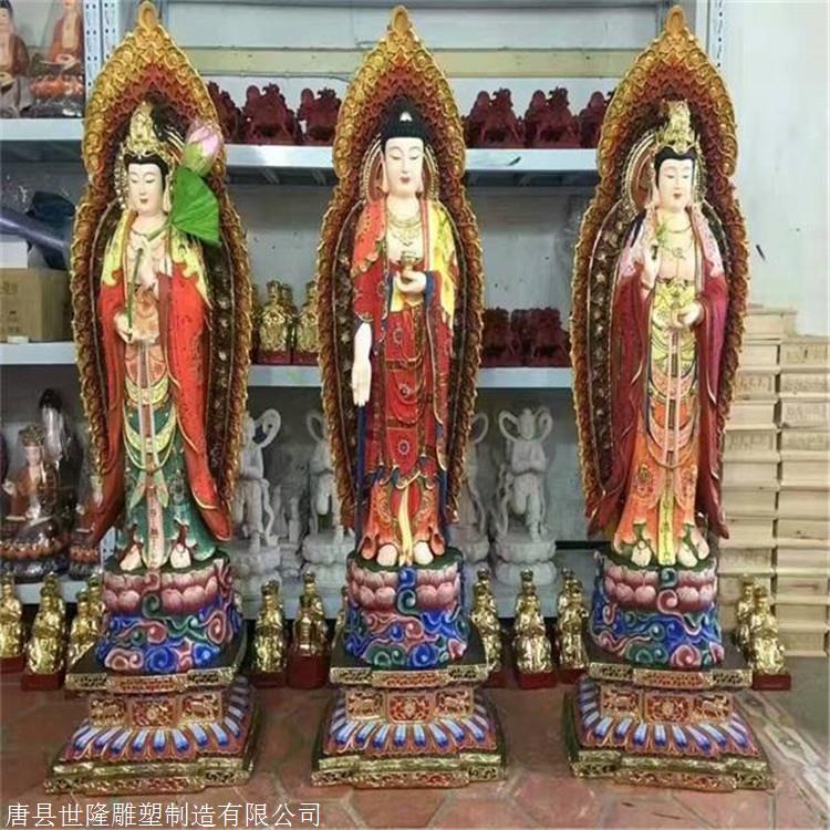 玻璃钢彩绘西方三圣雕塑 寺庙纯铜佛像雕塑 世隆厂家制作