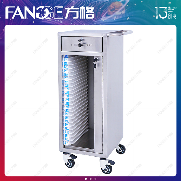易清洁25格不锈钢病历推车 灵活脚轮病历车厂家