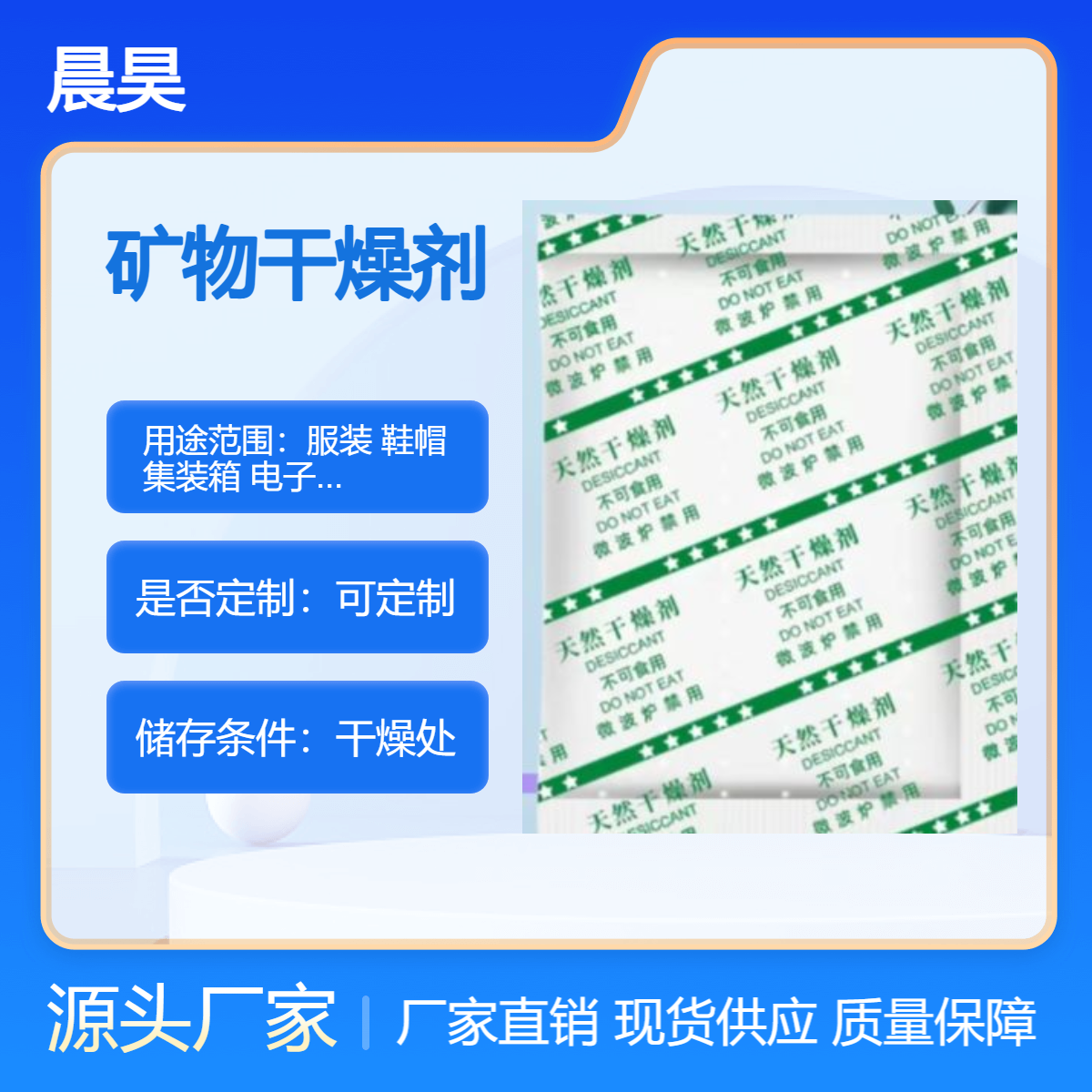 批发塑料制品机械设备服装产品出口用100克矿物干燥剂现货