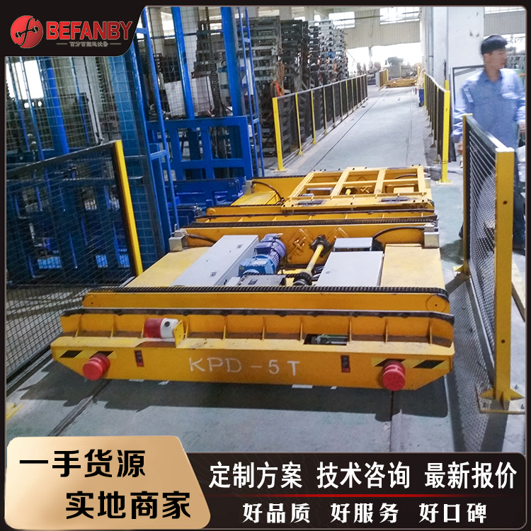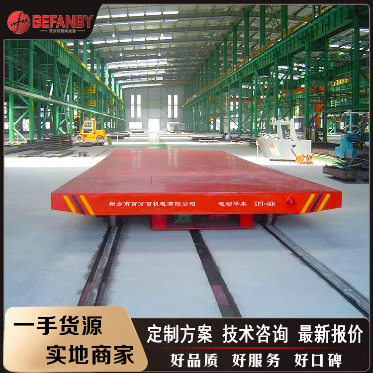 河南电动轨道平车厂家 50吨重型轨道搬运车 KPT拖链式平板车