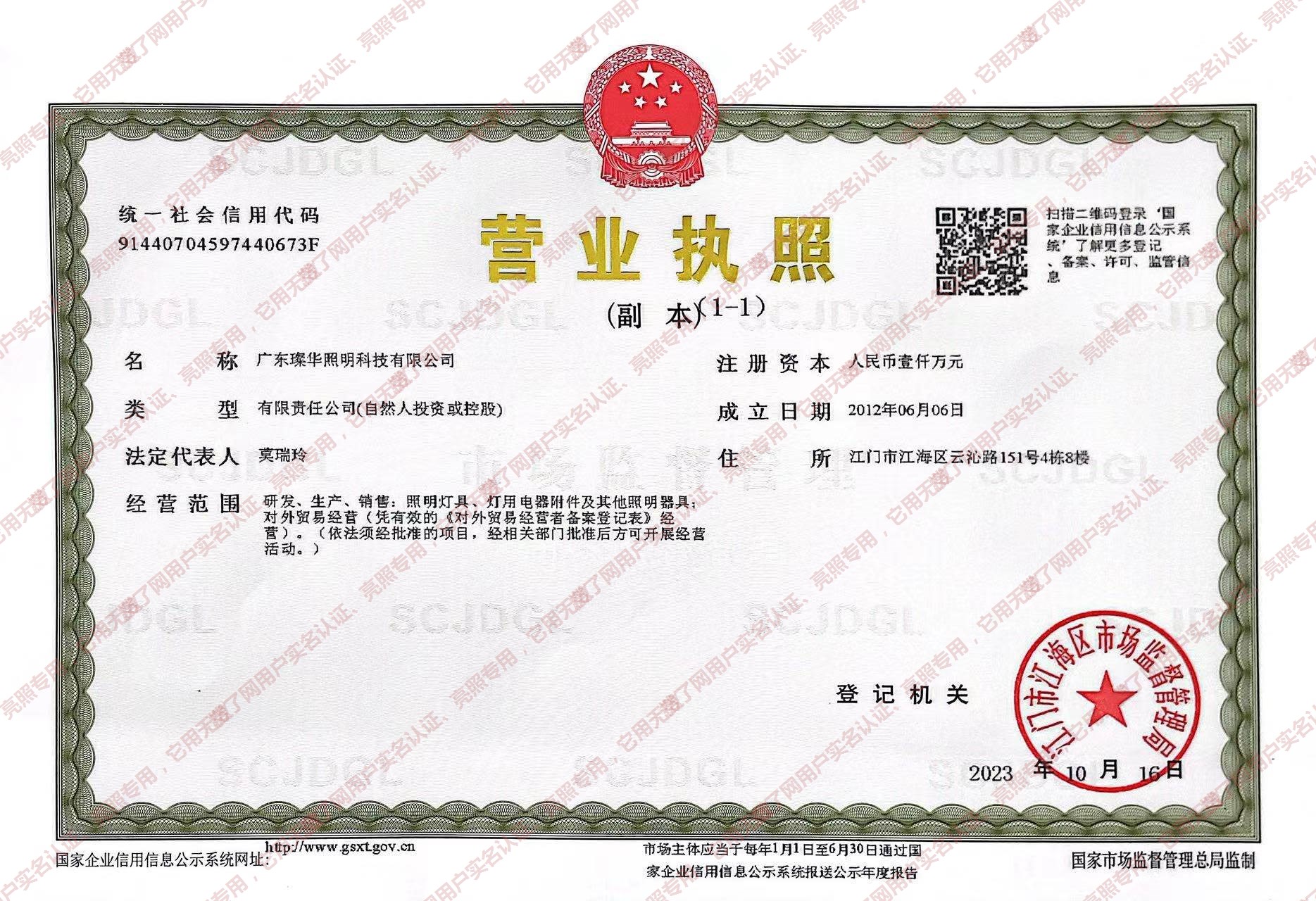 江门市璨华照明科技有限公司
