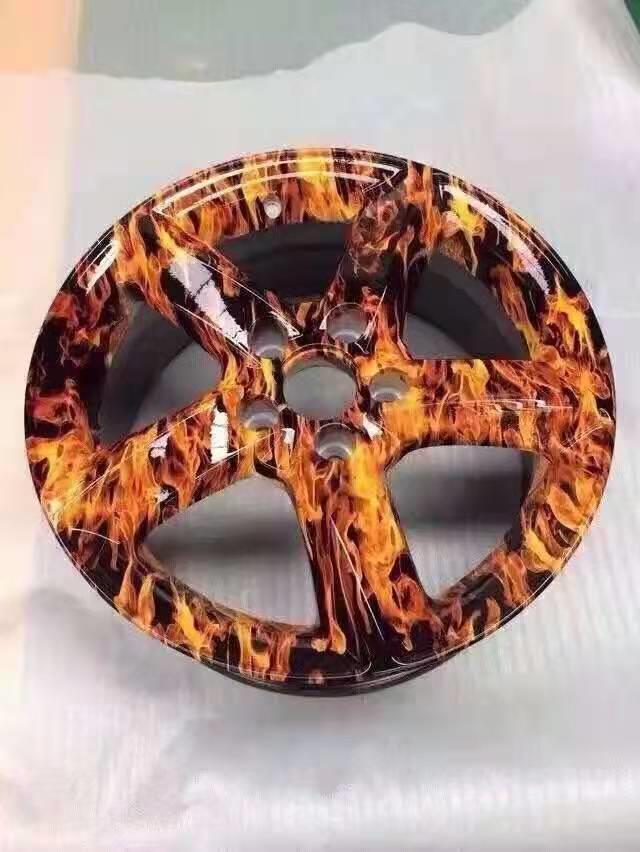 水转印利用水的压力和活化剂使水转印载体薄膜上的剥离层溶解转移,基本流程为: (一)膜的印刷:在高分子薄膜上印上各种不同图案; (二)喷底漆:许多材质必须涂上一层附着剂,如金属、陶瓷等,若要转印不同的图案,必须使用不同的底色,如木纹基本使用棕色、咖啡色、土黄色等,石纹基本使用白色等; (三)膜的延展:让膜在水面上平放,并待膜伸展平整; (四)活化:以特殊溶剂(活化剂)使转印膜的图案活化成油墨状态; (五)转印:利用水压将经活化后的图案印于被印物上; (六)水洗:将被印工件残留的杂质用水洗净; (七)烘干:将被印工件烘干,温度要视素材的素性与熔点而定; (八)喷面漆:喷上透明保护漆保护被印物体表面; (九)烘干:将喷完面漆的物体表面干燥。