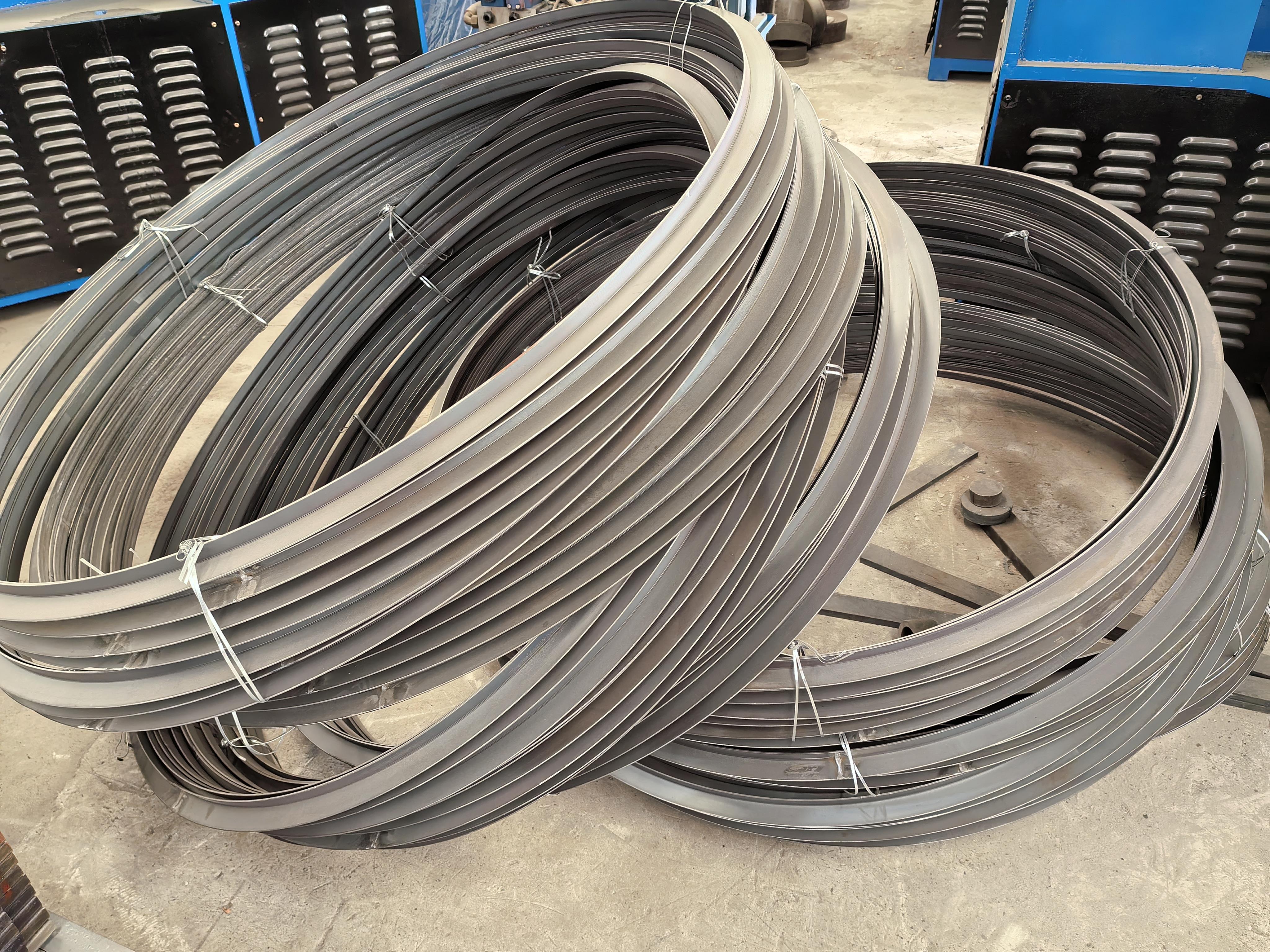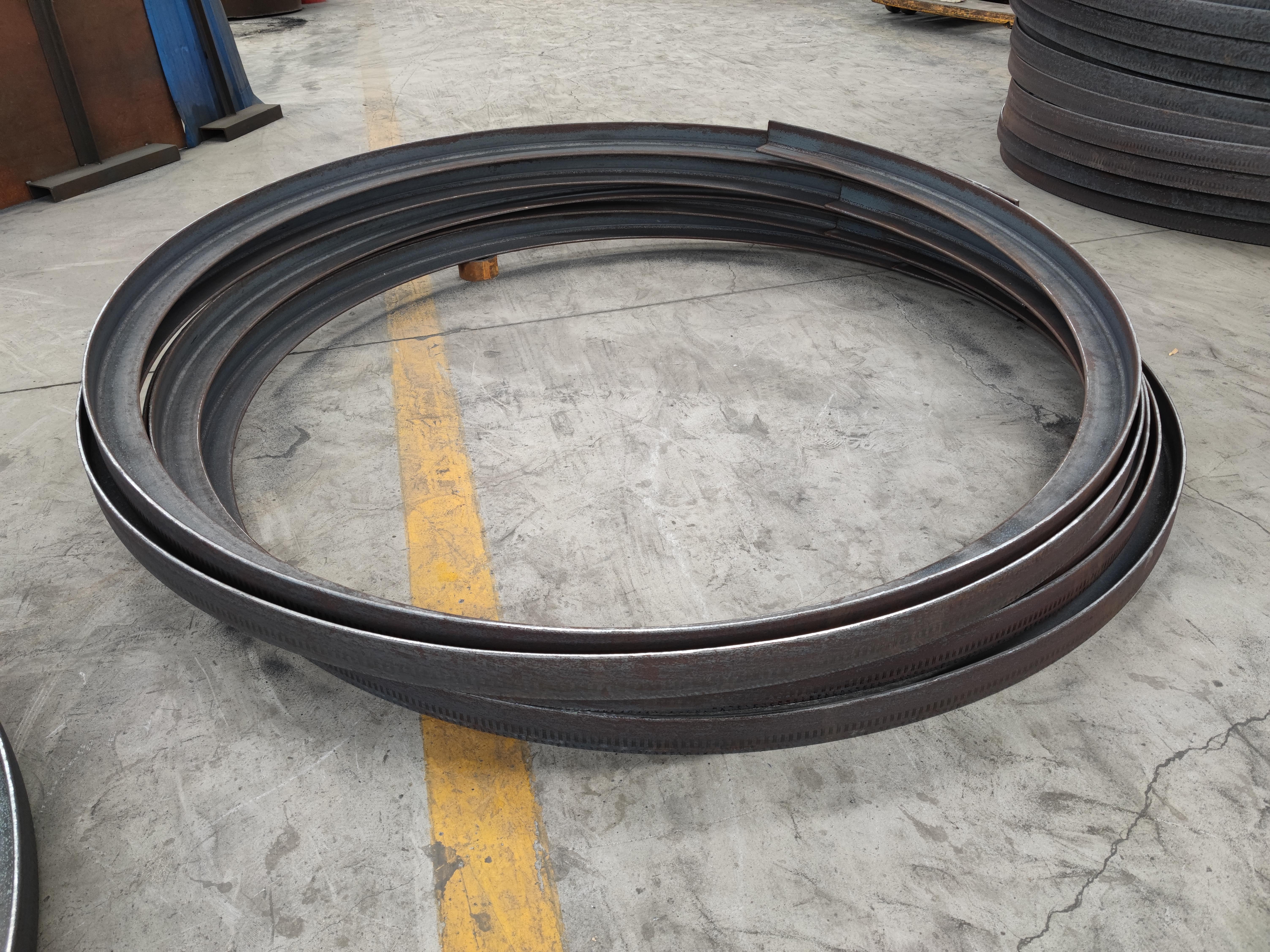 厚度3mm-----80mm,可根据您的要求将碳钢、不锈钢、有色金属型材带钢、角钢、槽钢、管子等卷制成直径150-8000mm的圆环、环板、法兰半成品。产品平整度失圆度控制在2mm左右。