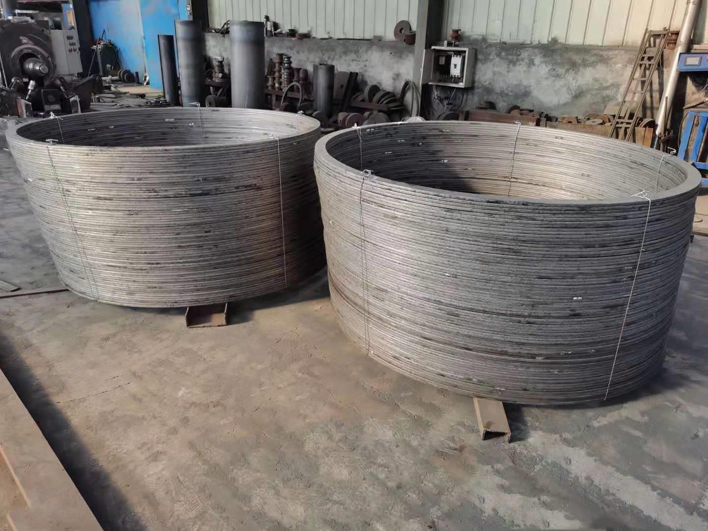 原料精细化预处理:选用公差≤±0.5mm 的高精度扁钢,通过抛丸除锈工艺去除表面氧化皮(除锈等级达 Sa2.5 级),再经超声波清洗清除油污,确保卷制时表面无杂质附着。同时采用校直机对扁钢进行多辊校直,直线度误差控制在 1mm/m 以内,从源头保障卷制精度。?