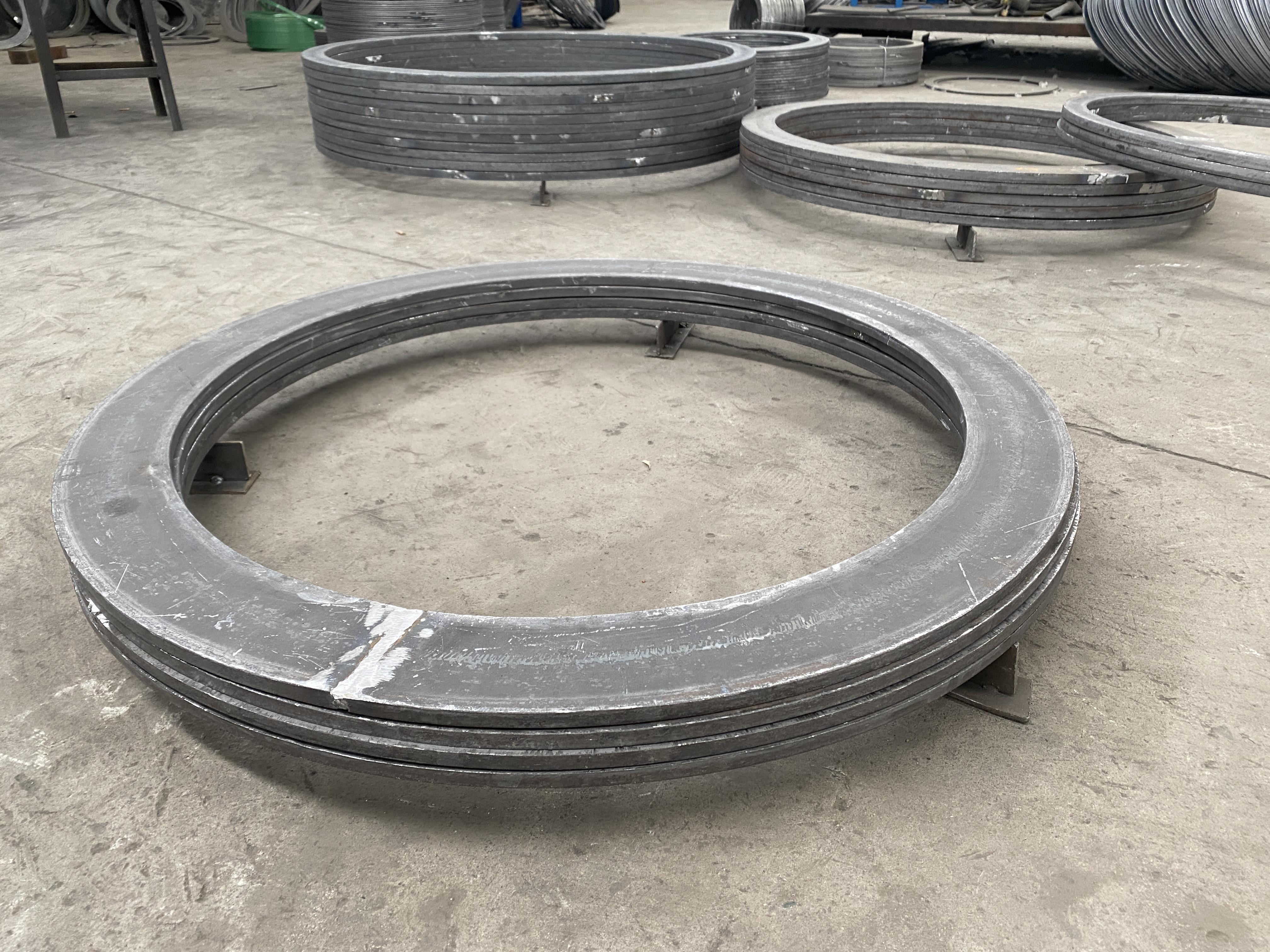 智能冷卷成型:采用数控冷卷机,输入客户图纸的内径、外径、环宽参数后,设备自动计算弯曲弧度与压力参数。通过液压伺服系统实现渐进式弯曲,弯曲速度 0.5-1m/min,实时通过激光测距仪监测环形圆度,确保最终圆度误差≤±2mm,杜绝椭圆、局部凸起等缺陷。冷卷工艺的核心优势的是:金属晶粒未因高温长大,坯体抗拉强度比热卷产品高 10%-15%,且无需后续退火处理,生产效率提升 30% 以上。?