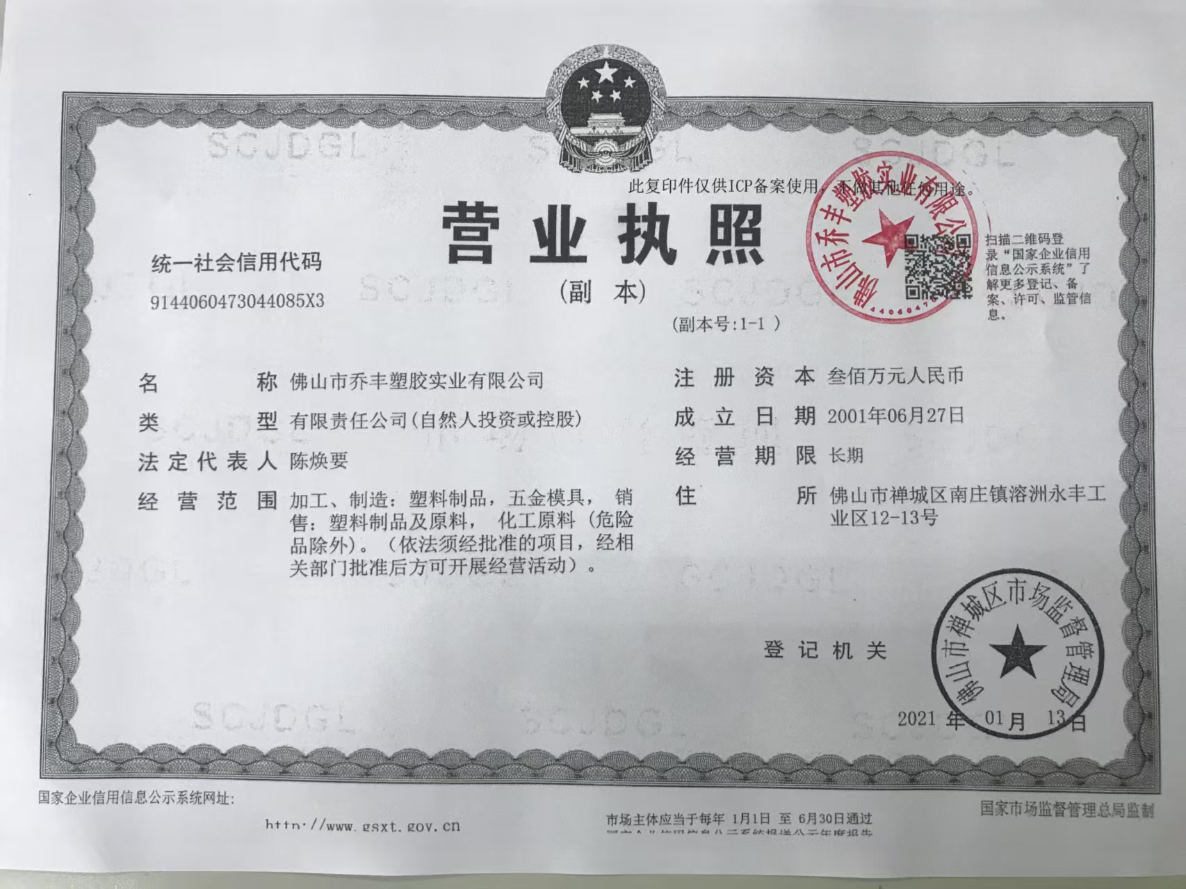 - 佛山市乔丰塑胶实业有限公司