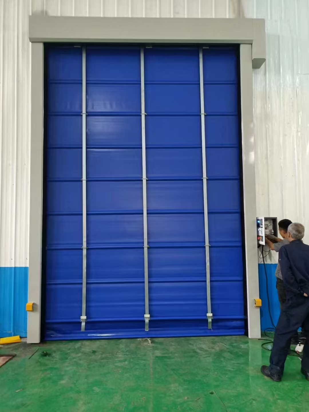 6、密封性能:底端装有弹性的PVC基布配重气囊,它可与各种不平坦地面紧密结合;门柱密封采用密封毛刷增加了更好的密封性。