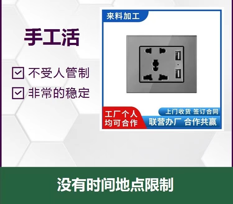 本公司直接外发手工,不挣差价,兼职或组织人员都可以。常年有大量电子产品外发加工,手机喇叭,计算机,开关,器,电子数显感应等电子元件。