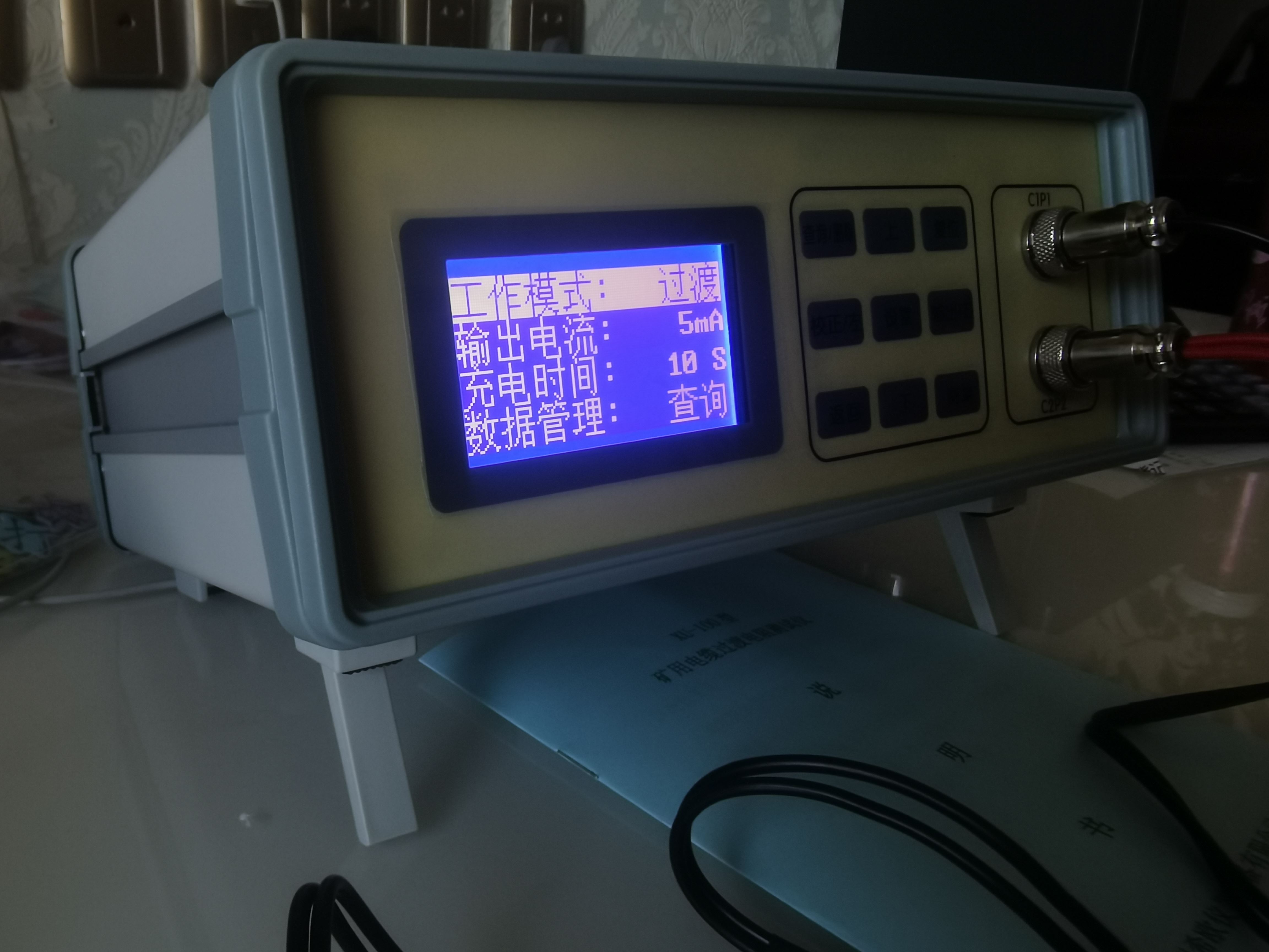 过渡电阻测试仪功能及特点 ? 仪器可实现0-4kΩ的最高精度为0.2%的电阻测量。 ? 测量结果自动保存,可随时查询,最大可保存200组数据。 ? 提供校正功能,可使用标准电阻进行数字化校准标定,使测量显示值和标准值保持一致。消除使用传统电阻测试设备因电子器件老化产生偏差而又无法修正的忧虑。 ? 提供恒流源/电压测量。 ? 仪器具有自动放电保护功能,防止在接线时,测试人员静电及测试样品静电损坏仪器设备。 ? 12864液晶显示,触摸按键,中文菜单参数设置。 ? 智能化测量,测量时仅需按下测量键 XU-100矿用电缆过渡电阻测试仪的主要参数 性能指标 1、 过渡模式测量指标(2夹测试线) 测量范围:0-4kΩ 测量电流:4mA 最小分辨率:0.1mΩ 测量精度:±0.2% (10Ω-4kΩ) 2、 恒流源输出:同测量电流 3、 测量方法:四端子合并双测试夹 4、 数据存储:200条 5、尺寸: (W)258mm*(H)106mm*(D)206mm
