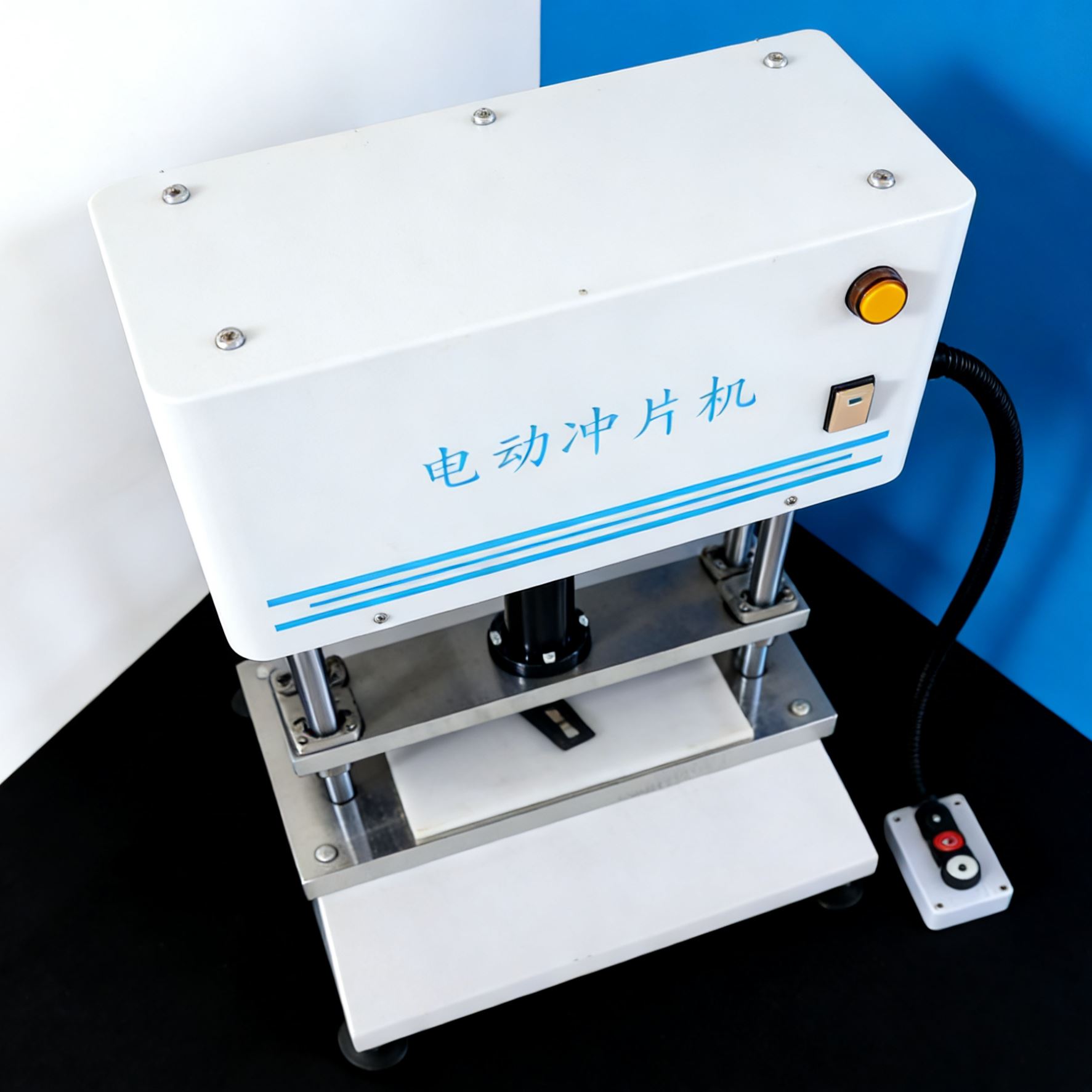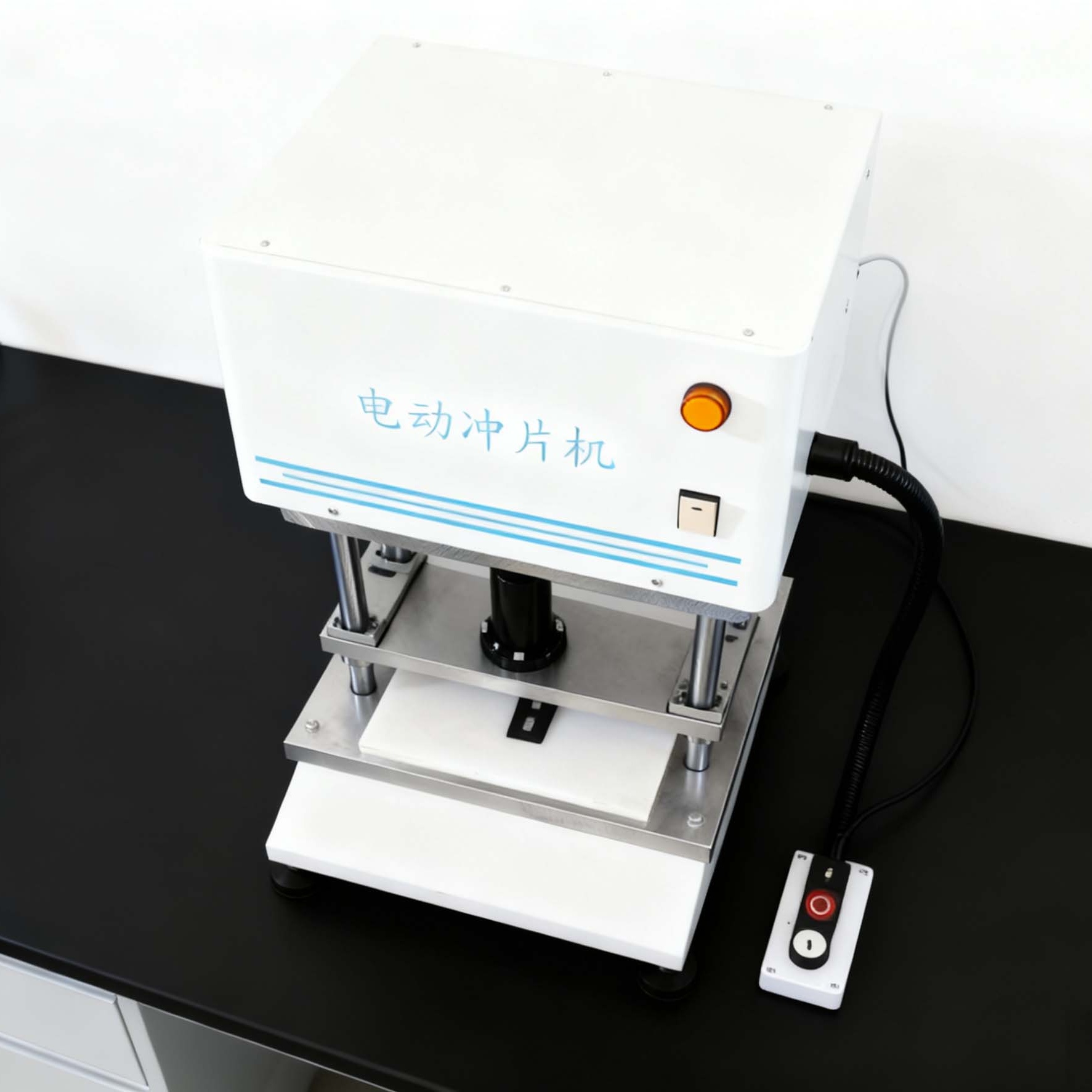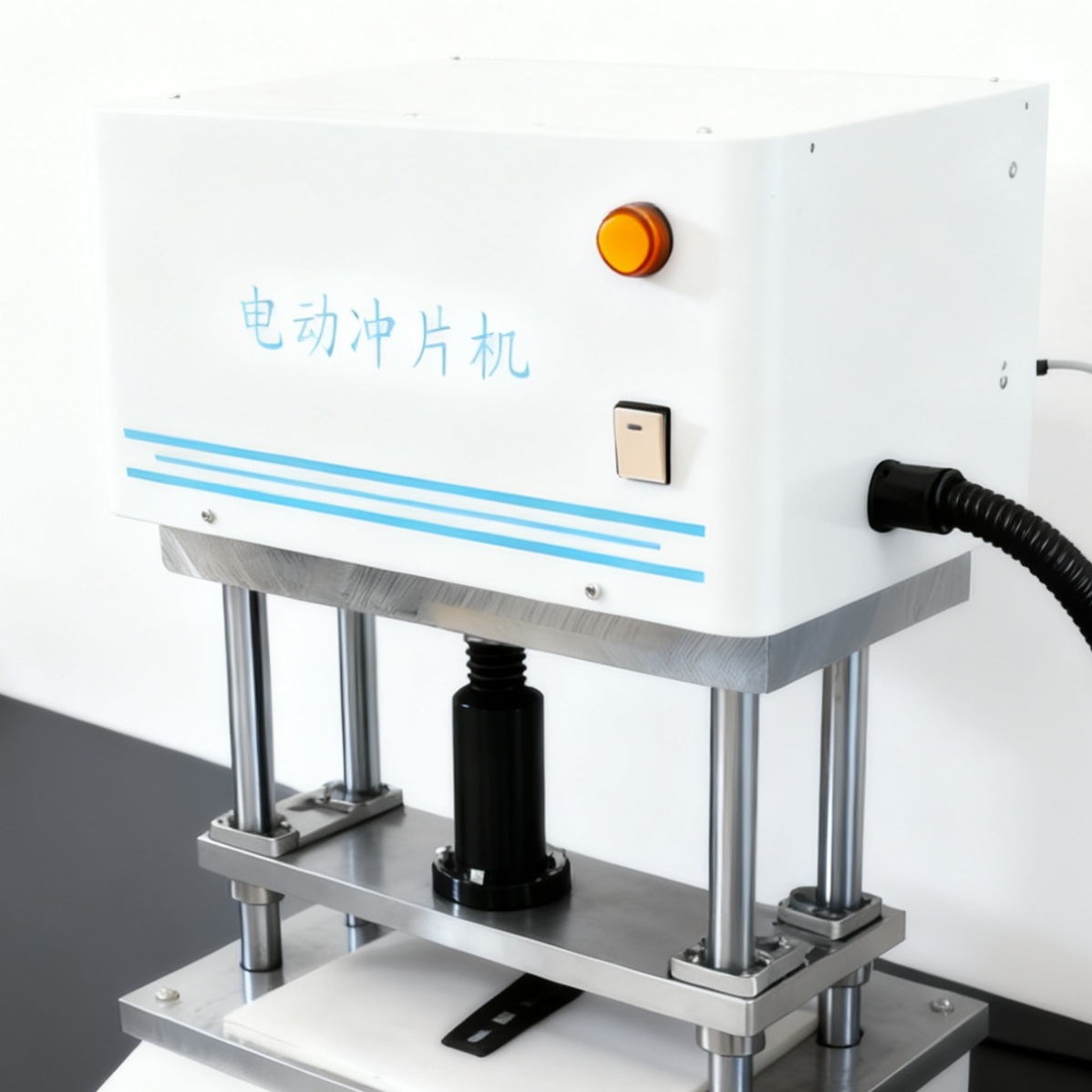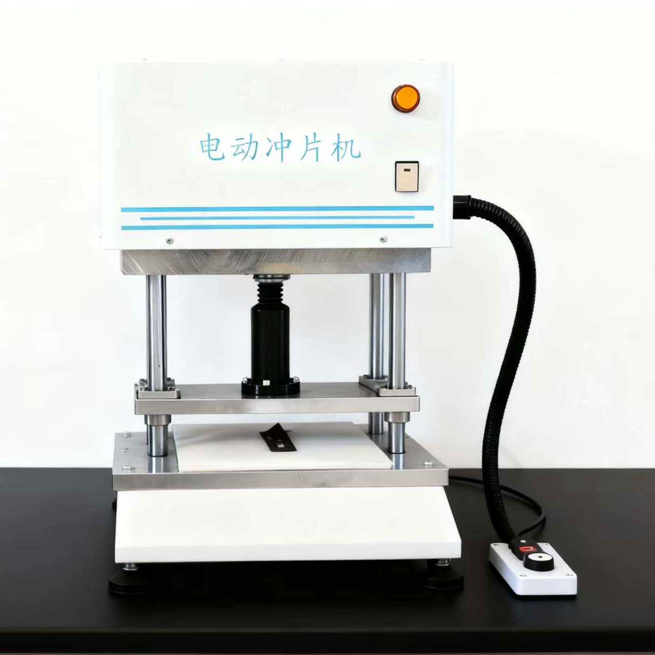 电动冲片机用于将橡胶、塑胶、皮革及其他特殊材料冲切成各种标准规定的试片,供试验时用。亦可充当小型冲床使用。为电线电缆厂及第三方质检中心制备试样提供方便。