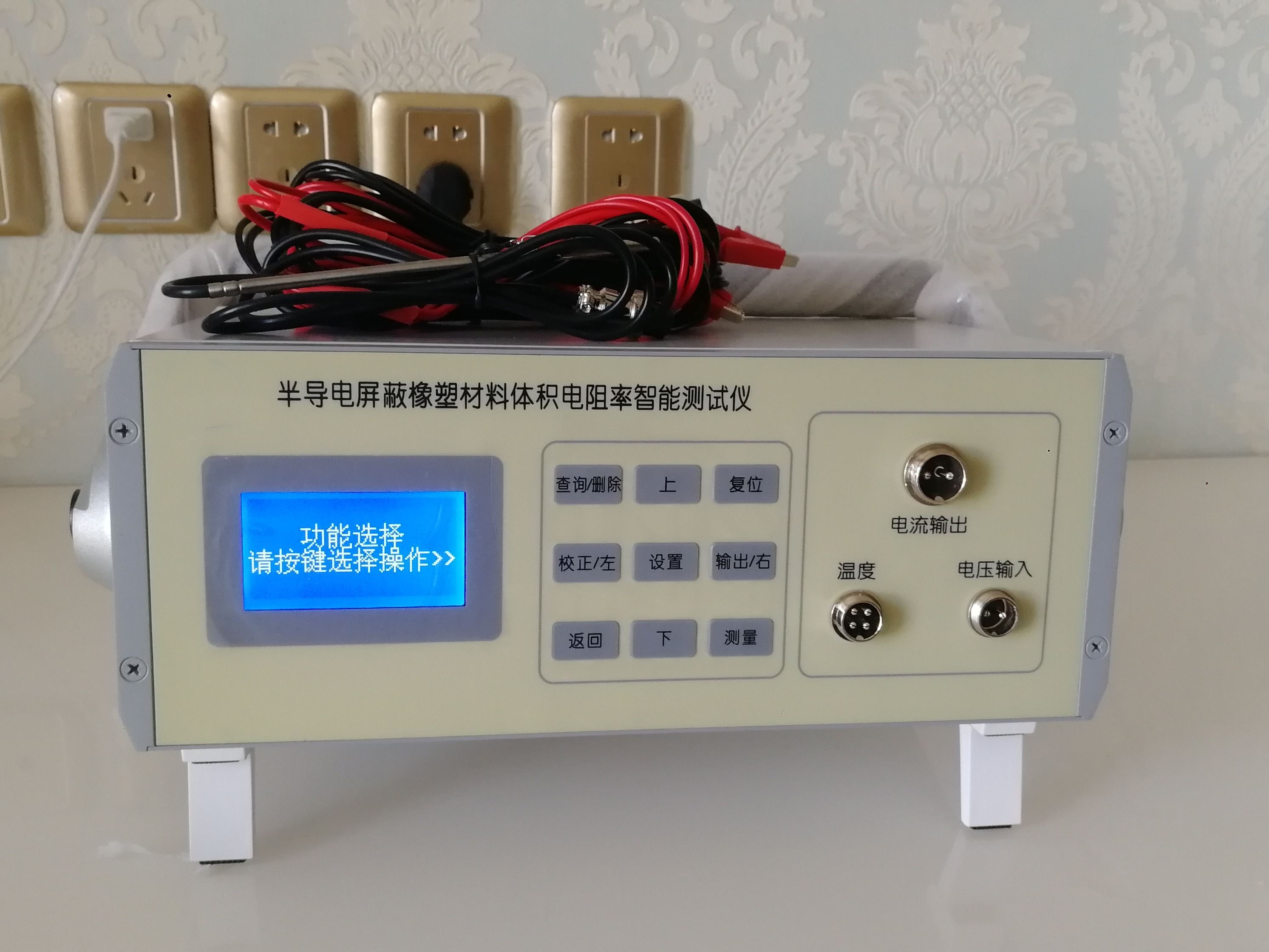 半导电屏蔽橡塑材料电阻率智能测试仪主要参数: 电阻测量指标: 测量范围:0.01μΩ-5MΩ 测量精度: 10mΩ-100KΩ ±0.05%(可校准) 最小分辨率: 0.01μΩ 电阻档位:5 MΩ、2.5MΩ、250KΩ、25 KΩ、2.5 KΩ、250Ω、25Ω、2.5Ω、250mΩ、25mΩ、2.5mΩ、0.25mΩ 电压测量指标 电压档位:0.2mV、2mV、20mV、40mV、80mV、160mV、320mV、640mV、1.28V、2.56V 电压测量精度:±0.05%