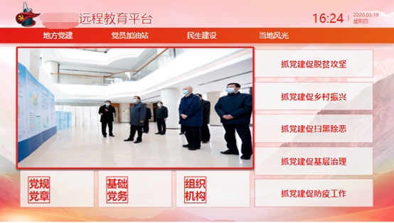 知了知屏可将视频、图片、文档等形式的党建学习资源定时分组下发到村/镇/街道办党支部的大屏;完善基层党组织党建资料、规范党建学习内容。