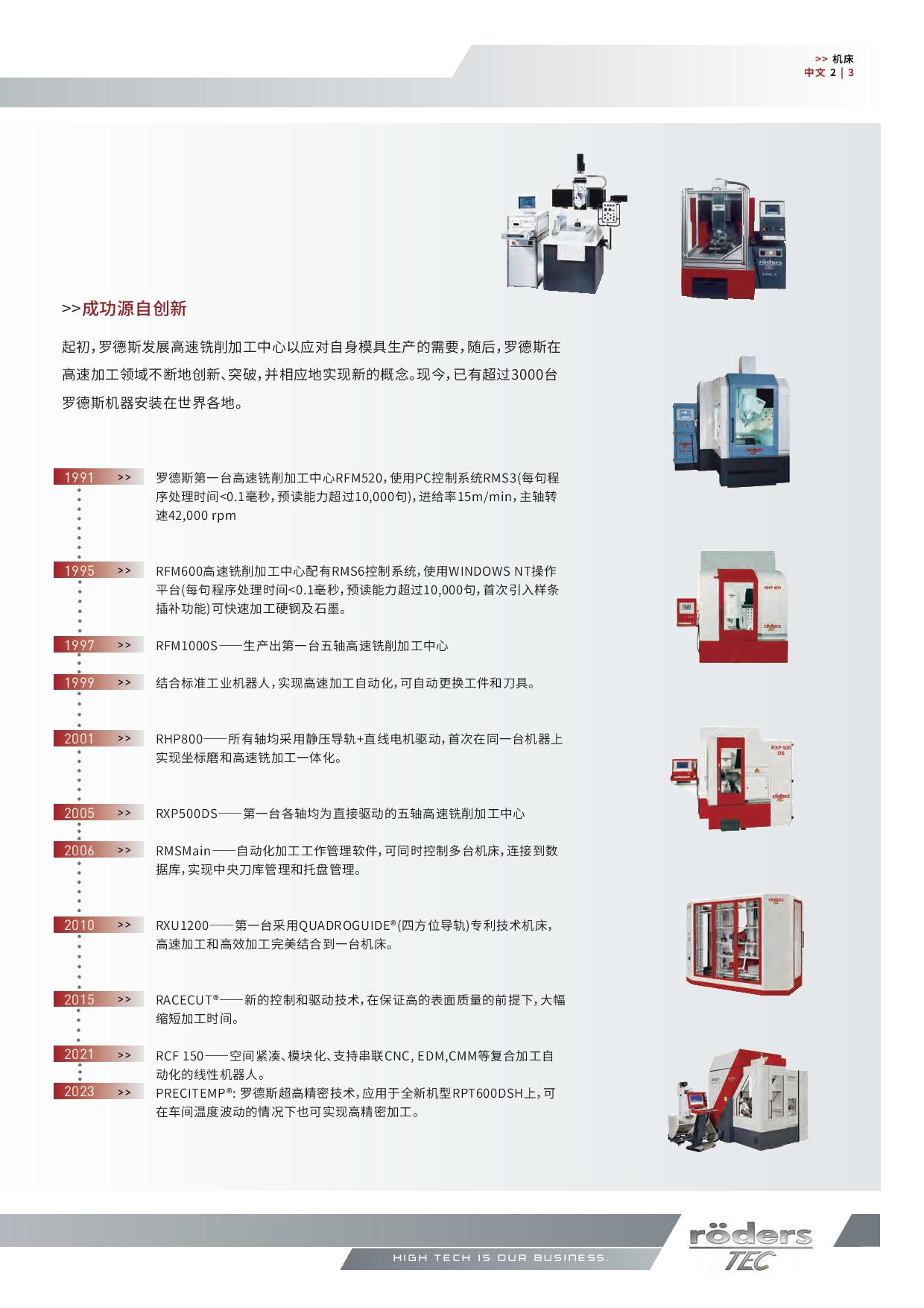 德国罗德斯(Roeders),是一家拥有超 200 年历史的家族机床制造企业。1789 年创立于德国北部 Soltau 市,从锡蜡模具生产起步,积累了深厚底蕴。20 世纪 80 年代末,因应模具生产新需求,开启高速加工中心自主研发之路,并在 1994 年推出世界首台高速加工中心,行业发展。如今,产品已全球 50 多个国家,装机量超 3000 台。