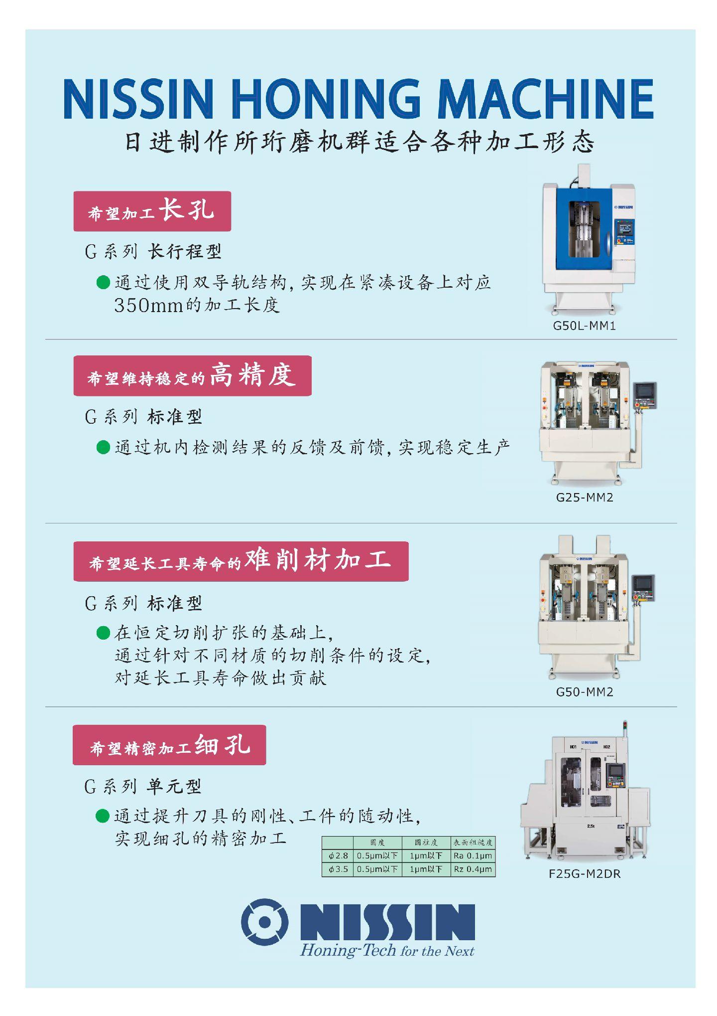 加工孔径范围:G25-MM2 型号可覆盖加工孔径 φ3 ~φ40 ,适用于加工各种小型精密零件,如汽车喷油嘴、小型液压阀等;G50-MM2 型号可覆盖加工孔径 φ4~φ100 ,能满足更多中型零件的加工需求,像汽车气缸、压缩机缸体等。