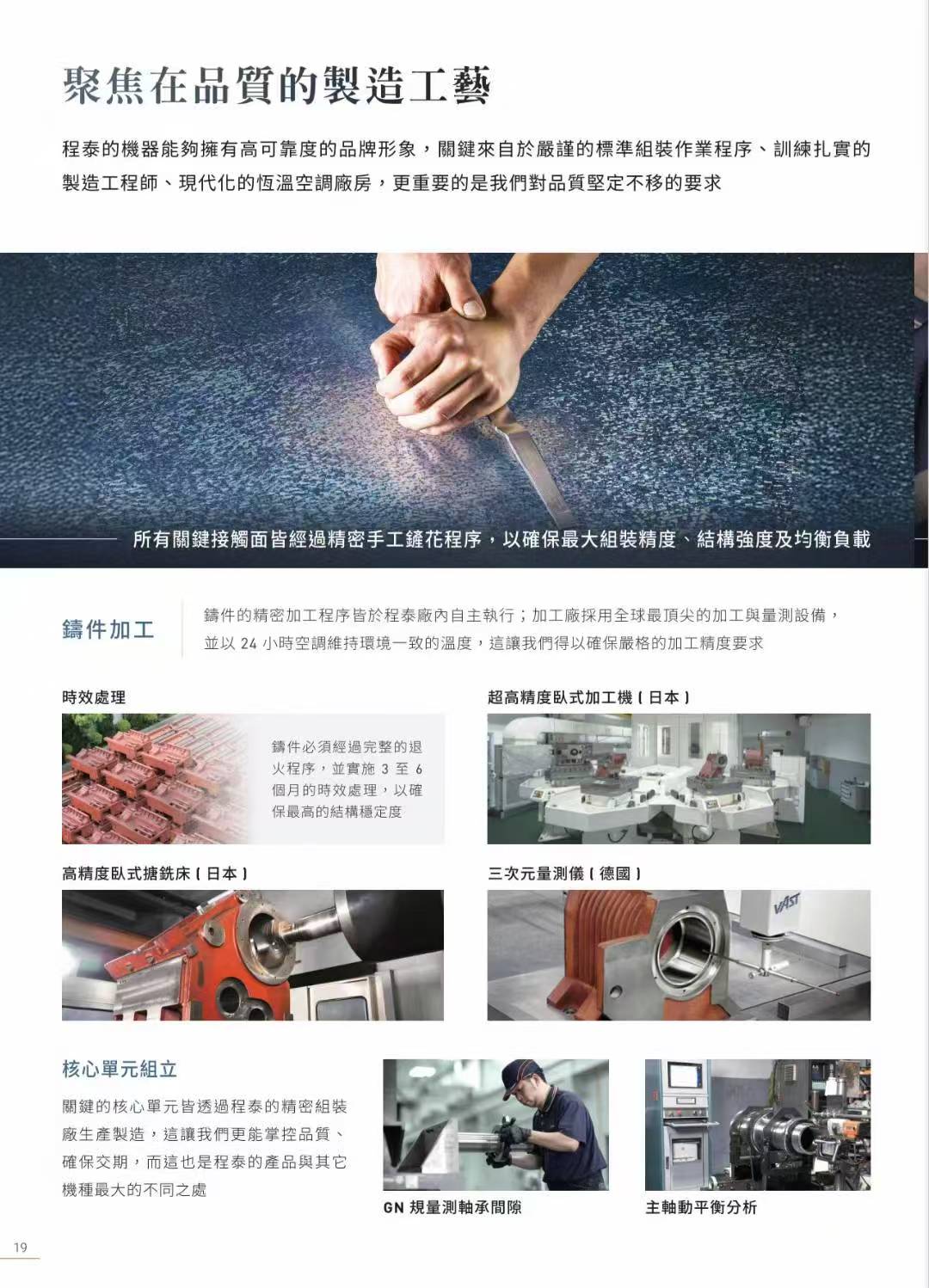 发展历程:1975年,程泰企业有限公司于台中市松竹路成立。1977年打开东南亚市场,1978年进入美国、加拿大与澳大利亚市场。1987年与工研院机械所合作开发完成GCL-150 CNC车床。1996年台湾业界开发完成动力刀塔机甲及部含双主轴双动力刀塔的7轴CNC车床-GTS-150。2002年打开日本市场,2007年正式挂牌上市。