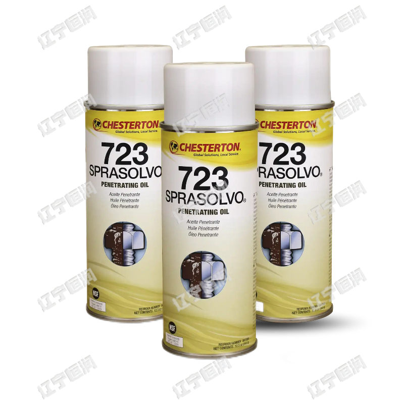 Chesterton® 723 FG Sprasolvo 是一款高效快速渗透油,能深入锈蚀部位,轻松松动卡死的螺母、螺栓及配件,且不损伤金属基材。凭借的毛细作用,它能到达其他渗透剂无法触及的隐蔽区域。产品可显著降低拆卸扭矩,通过渗透锈层、水垢或腐蚀物,分解焦油、油脂、污垢以及碳/石墨沉积。