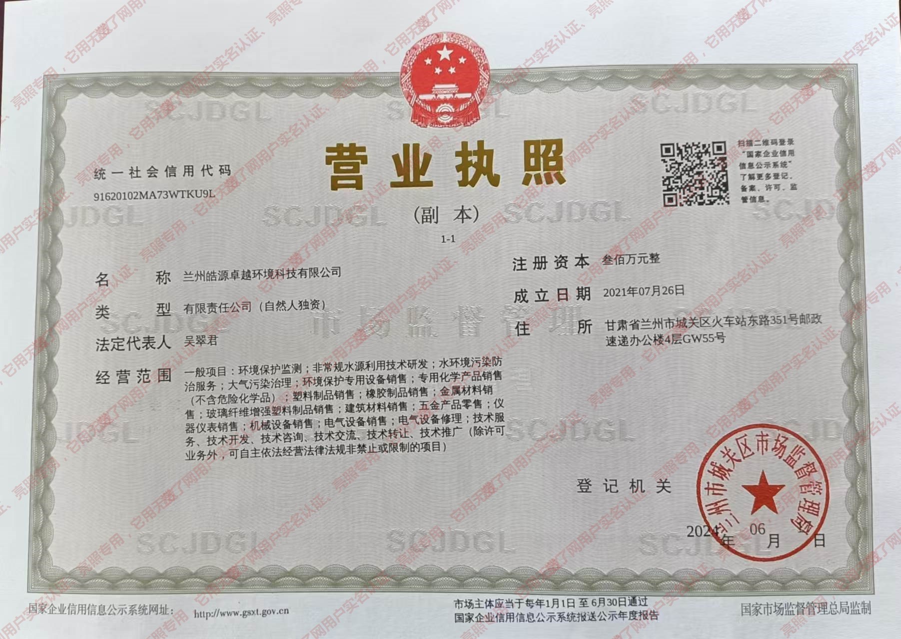 地址:甘肃兰州市城关区火车站东路351号邮政速递办公楼4层GW55号