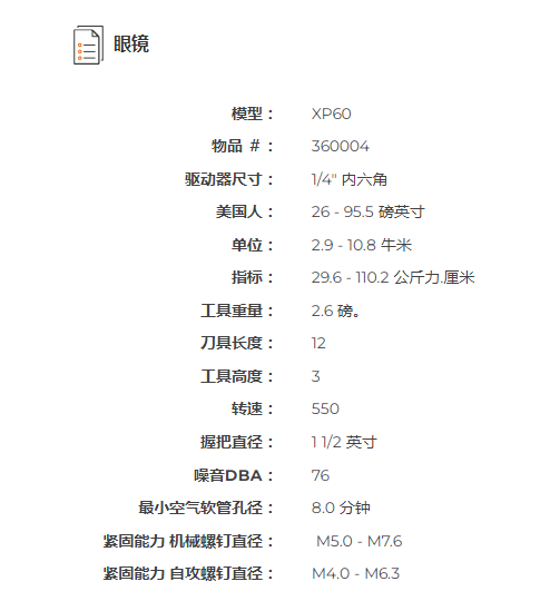 XP60 直列式气动螺丝刀适用于高产量拧紧应用。该气动螺丝刀以实惠的价格为装配和制造应用提供耐用性、动力和速度。气动螺丝刀专为安全操作和提高操作员舒适度而设计,与同类气动工具相比,噪音分贝更低,对操作员的振动最小,扭矩反作用力小。该气动工具采用专利离合器设计,可通过可重复的扭矩控制提供可靠的精度。离合器机构在达到预设扭矩设置后关闭气源,防止出现过扭矩情况。