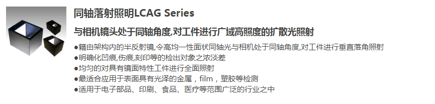 与相机镜头处于同轴角度,对工件进行广域高照度的扩散光照射