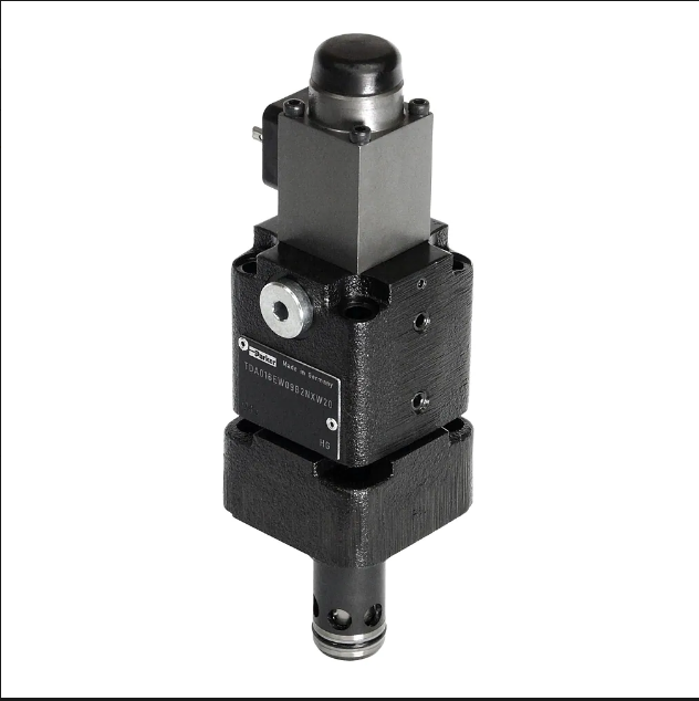 Parker派克TDA系列比例节流阀是由三级组成。阀锥由座阀结构的伺服阀芯进行先导控制。带力反馈的比例电磁阀调节伺服阀芯的位置。因此阀锥的位置不会受到压差的影响。压差可以达到大的工作压力。先导控制的控制油流量大约为1 l/min。工作的低压力为3 bar。控制压力必须大于A口处系统压力的25%。流量的调节精度为0.5%。由于流量特性曲线是渐进的,因此当小流量时,该调节精度在渐进区域内被改善为0.25%。整个行程的调节时间大约为25ms。当油液由B向A流动时,在关闭的初始位置上由B向A不能有泄漏。在该初始位置上先导控制不需要控制油。回油口T的压力不能高于100 bar