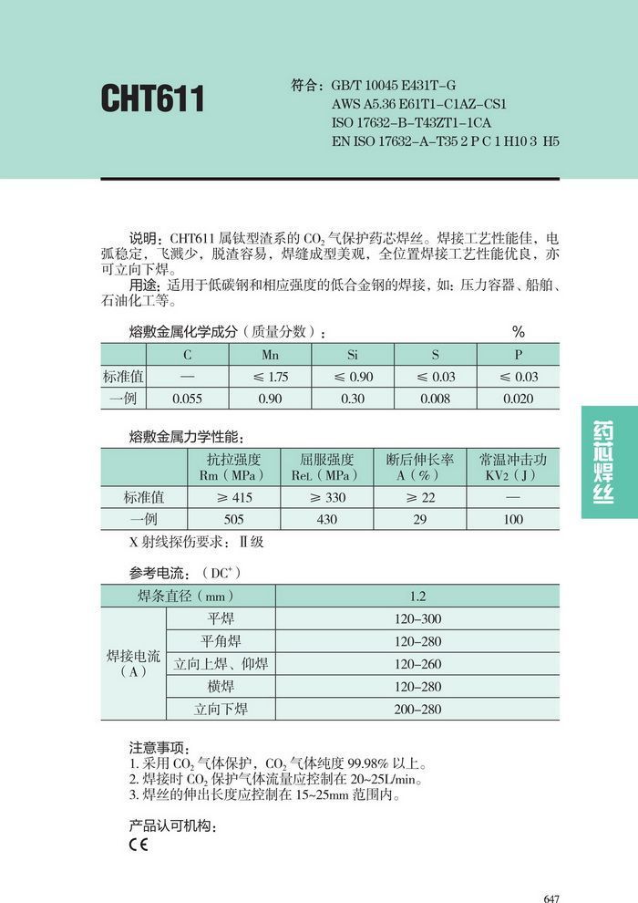 大西洋CHT611高强钢药芯焊丝 E431T-G气体保护药芯焊丝
