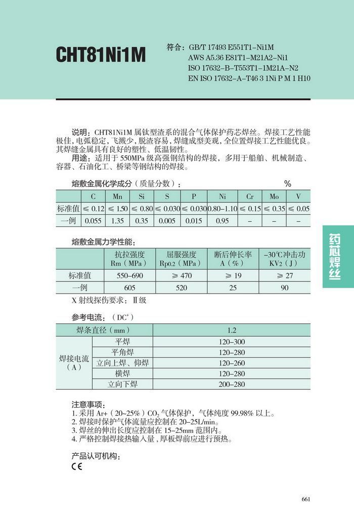 大西洋CHT81Ni1M药芯焊丝 E551T1-Ni1M高强钢药芯焊丝