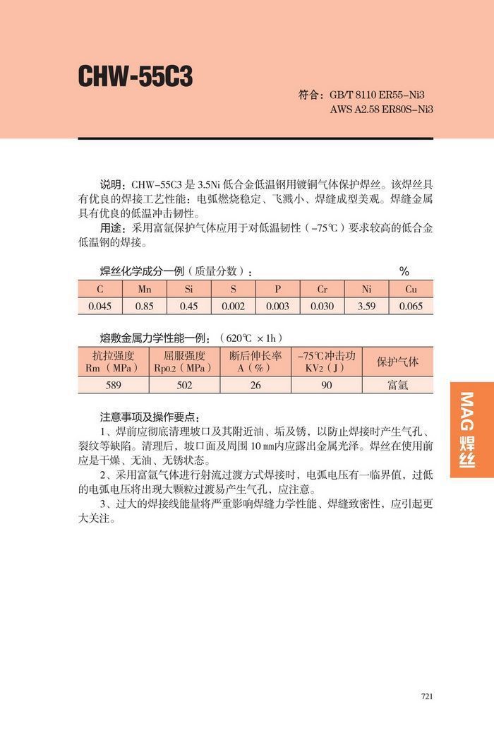 大西洋CHW-55C3低温钢焊丝 ER55-Ni3/ER80S-Ni3 MIG/TIG低温钢焊丝