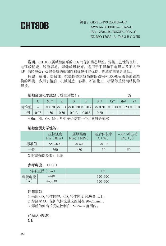 大西洋CHT80B药芯焊丝 E550T5-GC高强钢药芯焊丝