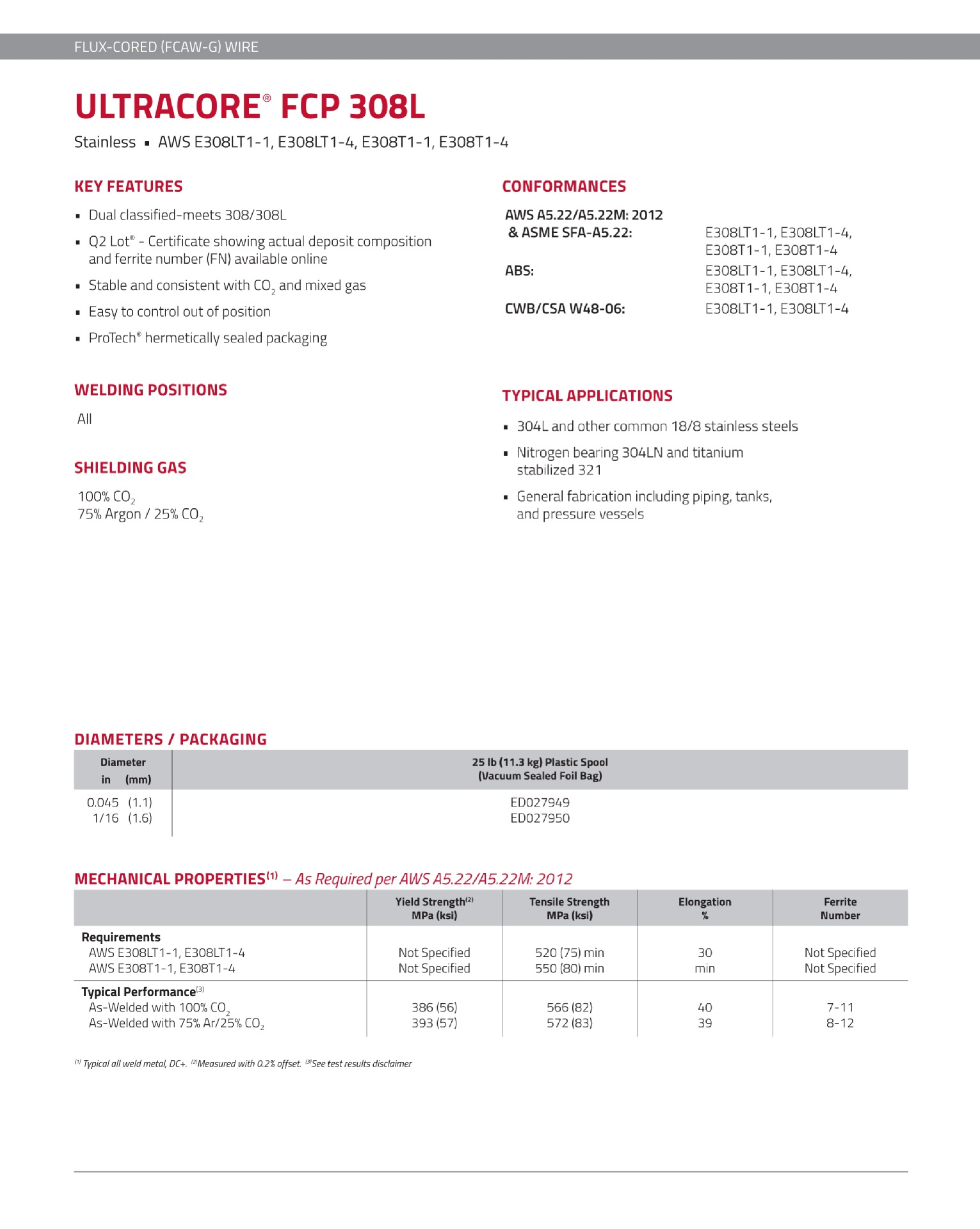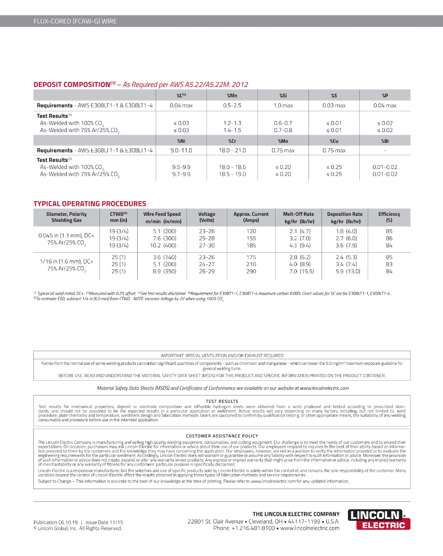 名称:美国林肯ULTRACORE FCP 308L/E308LT1-1/E308LT1-4/E308T1-1/E308T1-4不锈钢药芯焊丝