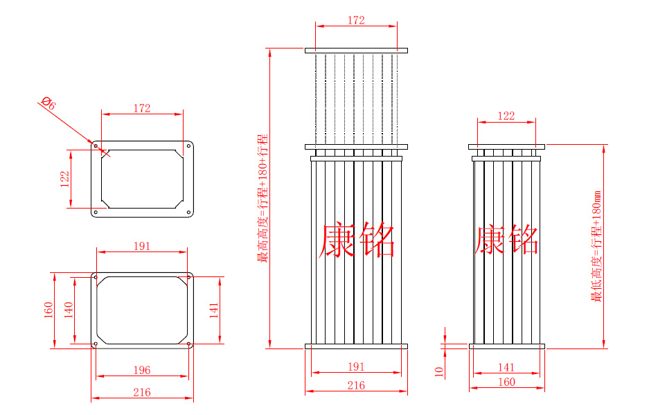 标准小安装尺寸:行程s 180mm 内置限位开关;