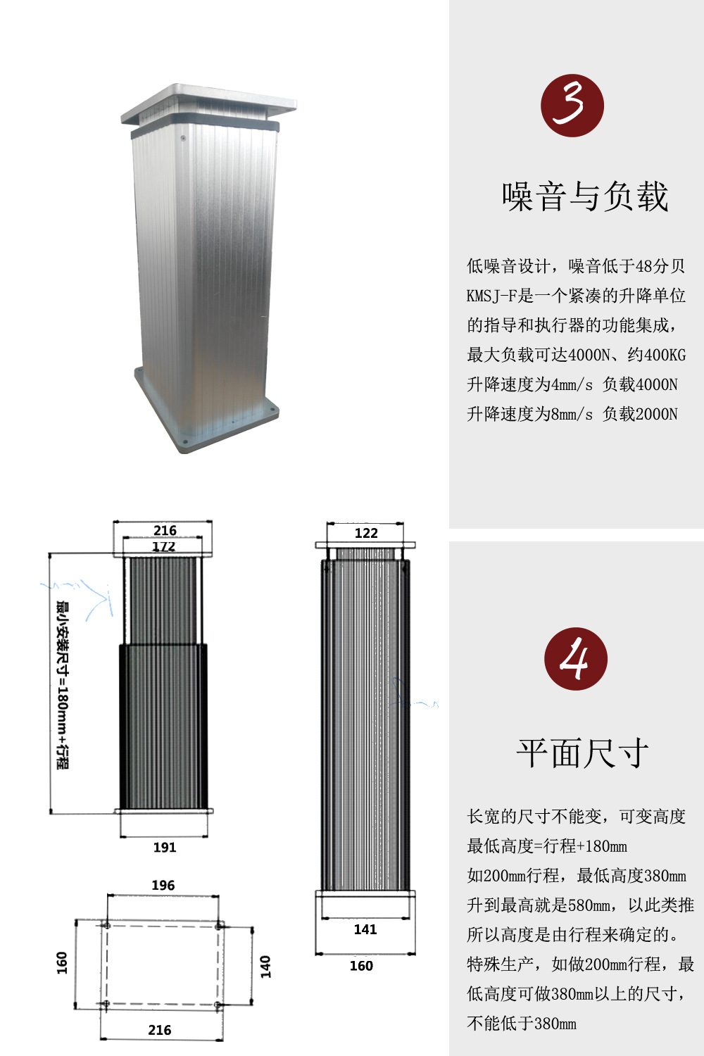km志君品牌升降柱子是为工作站台、升降桌、电脑桌、升降茶几,展会展台、榻榻米、仪器
