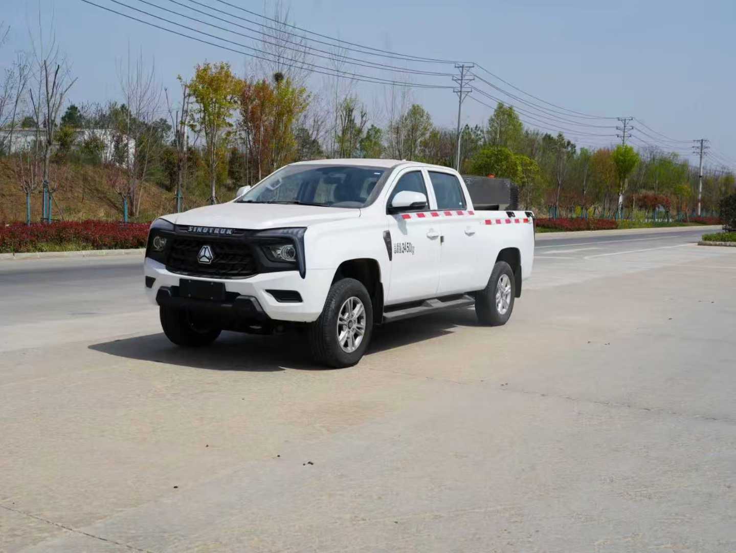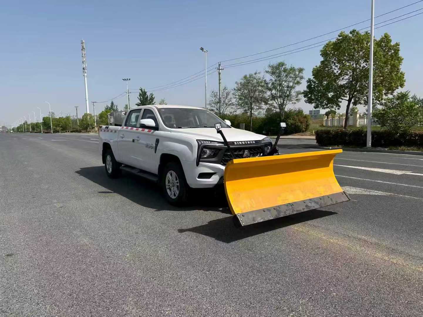 重汽四驱皮卡除雪车,配备1立方融雪撒布机、除雪铲、除雪滚,全场景适用,雪天通行无忧,