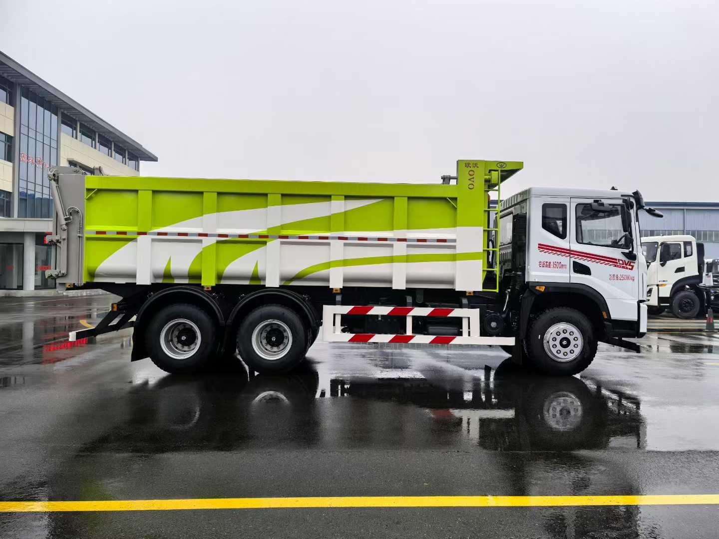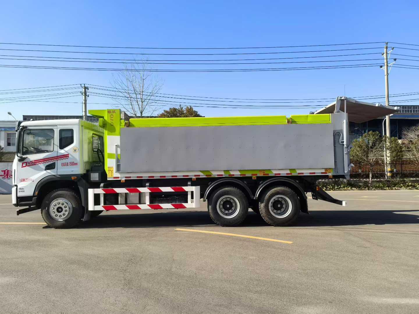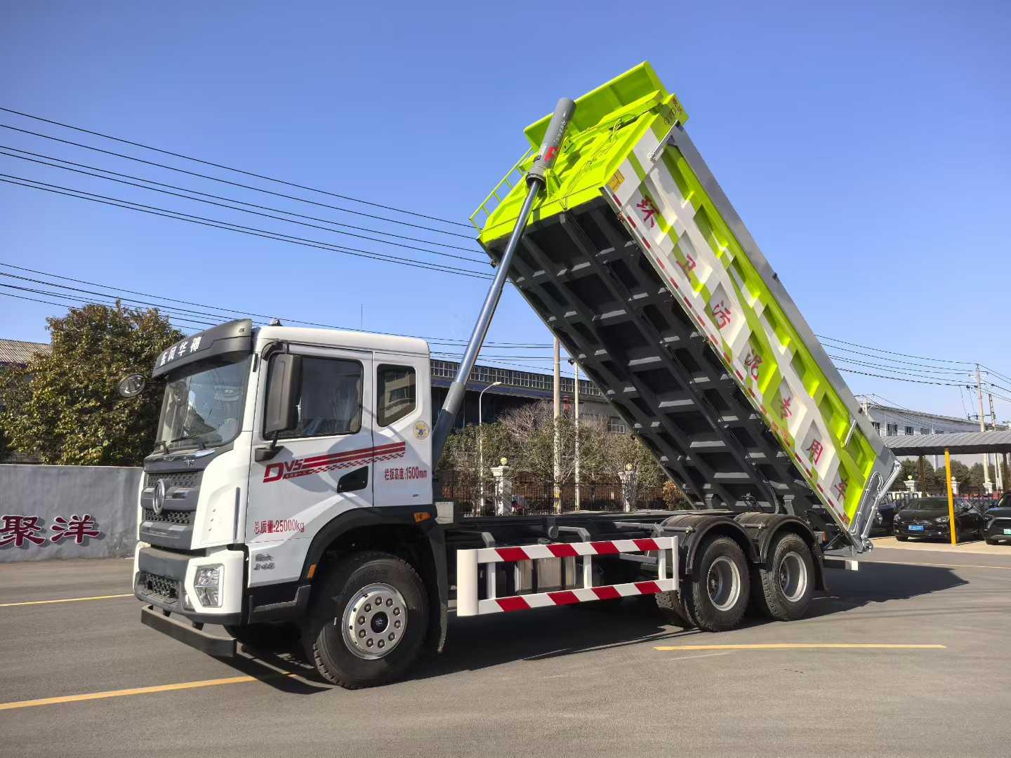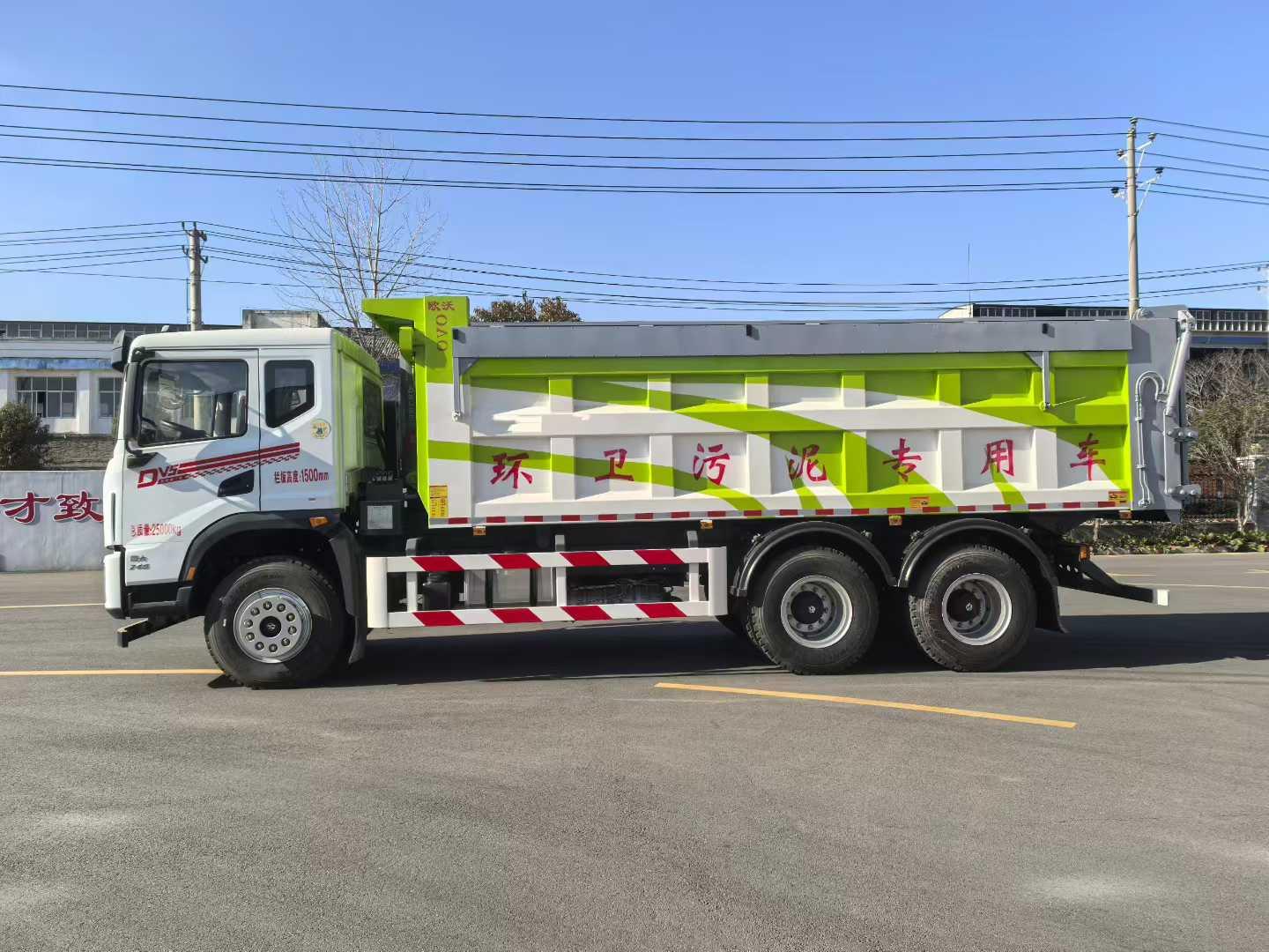 华神后双桥XZL5253ZWX6EQ污泥自卸车:底盘配置:底盘采用东风华神 EQ1250GL6DJ (6*4)自卸式垃圾车专用底盘。东风打造的新款豪华 T712 驾驶室,标配空气减震座椅,液晶仪表盘, 发动机为玉柴国六 B 阶段YCS06245-60A(245PS)OR YCS06270-60 (270PS),油耗低﹑动力强劲;变速箱为法士特 8JS110TM8档变速箱,11.00R20钢丝胎;前桥后桥为 153 加强型,速度快﹑承载力强。上装配置:箱体尺寸6.35X2.2X1.5米;上装按工程自卸承载标准设计,采用边4底5厚度Q355B低合金锰钢或高强钢制造,局部加强处理,149前置工程级大顶,底板采用主副四纵梁结构,副梁为套装梁结构,加强型宽尾翻转或贯通轴燕尾翻转,边角加强斜拉筋,后门框四周安装有硅胶密封条,液压驱动机械钩锁紧密封,标配无线加手动操作。