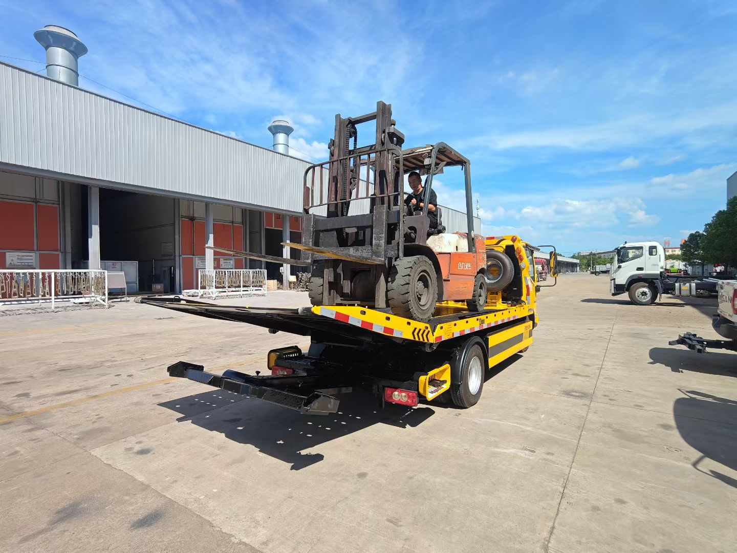 上装采用楚胜工艺,全套上装采用电泳防锈处理,采用进口液压系统,原装进口多路阀,下沉式结构设计,平板长宽接受特殊定制,平板带液压翻转带孔,一个2节后拖臂。