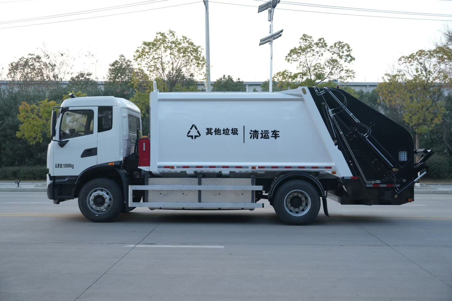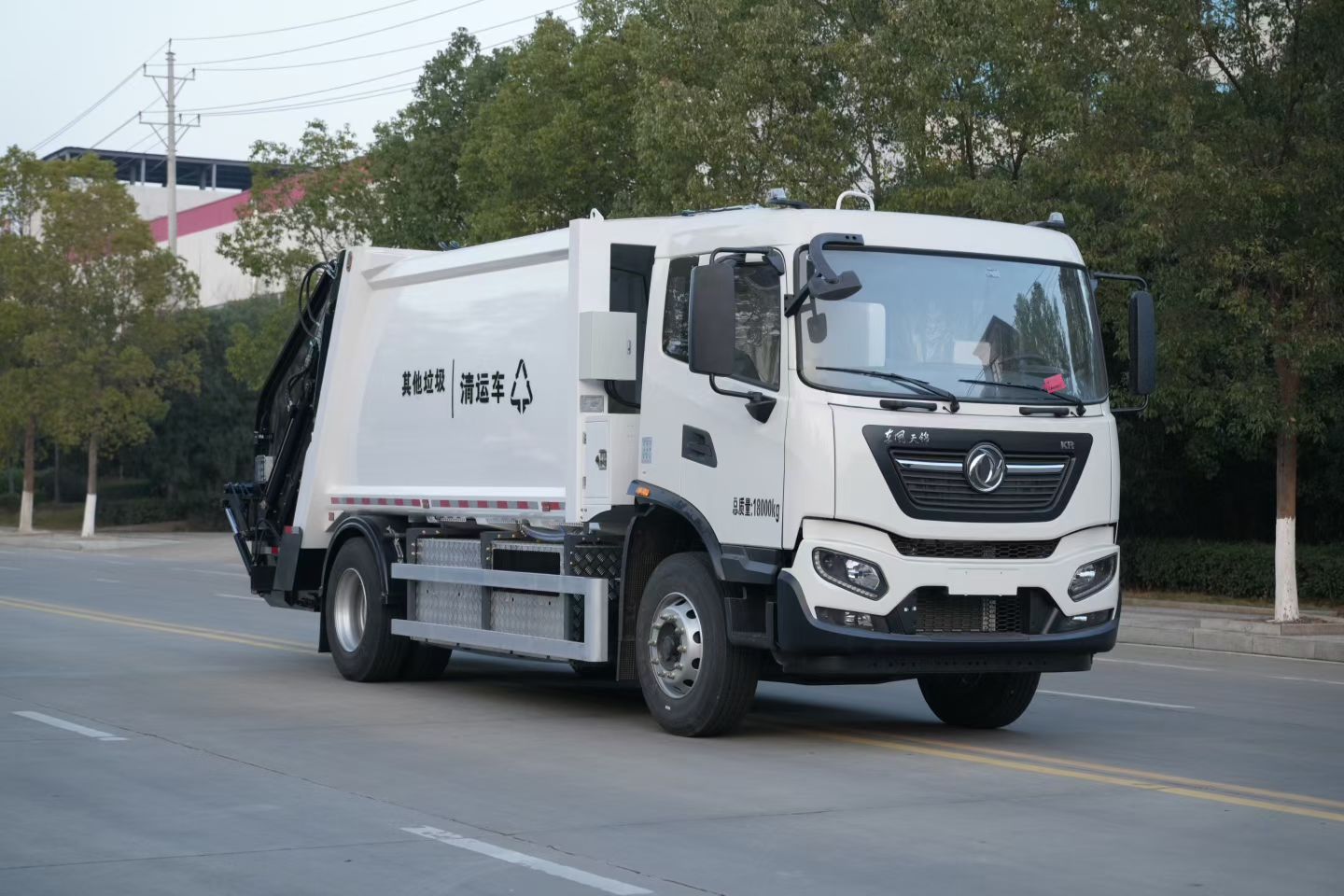 纯电动压缩式垃圾车是湖北永航专用汽车有限公司在吸收国内外同类产品有点的基础上,自主开发、设计的新一代后装压缩式垃圾车。该车外形美观,性能优良,操纵控制先进,采用双向压缩技术完成对城镇生活垃圾的收集和转运,装载能力强,箱体容积可达 12m3(可装载生活垃圾9 吨),其综合性能达到国内同类产品的先进水平。采用东风天锦 DFH1180EEV19 纯电动汽车底盘,品质优良,动力性能优异。